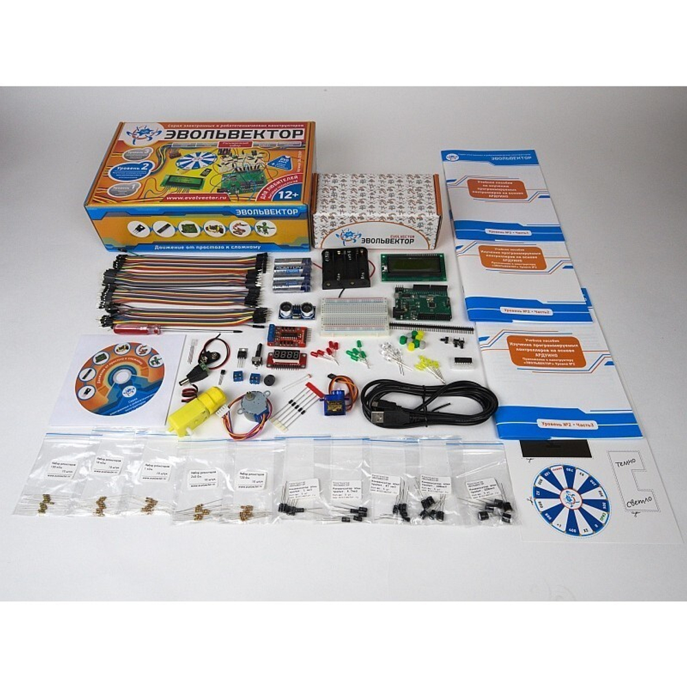 Помимо уроков из стартового и основного набора конструктор содержит целый ряд экспериментов, основанных на широких возможностях платформы Ардуино. Здесь и работа с массивами данных, и подключение семисегментных индикаторов, и создание собственных библиотек, а также подключение и управление различными электродвигателями: коллекторными и шаговыми. Таким образом расширенный набор затрагивает подавляющее большинство всех тех компонентов и устройств, которые могут понадобиться при реализации электронных проектов с использованием Ардуино.