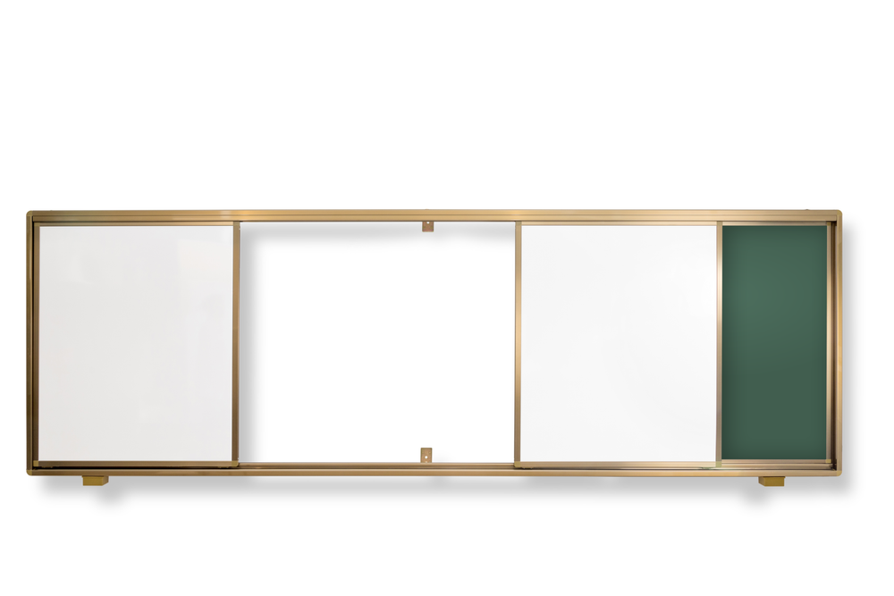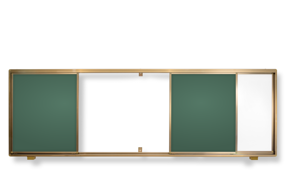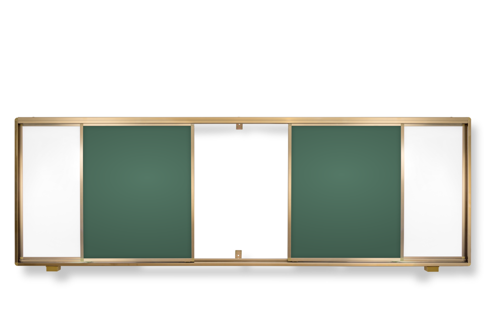 Система может комплектоваться различными комбинациями поверхностей: как меловыми, так и маркерными. Металлическая основа доски позволяет крепить к ней учебные наглядные пособия при помощи магнитов.