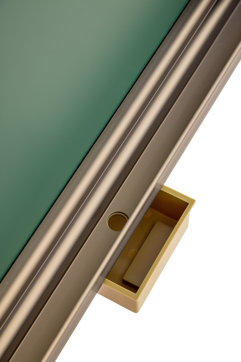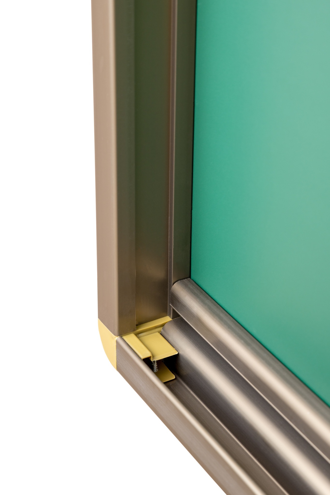 Система может комплектоваться различными комбинациями поверхностей: как меловыми, так и маркерными. Металлическая основа доски позволяет крепить к ней учебные наглядные пособия при помощи магнитов.