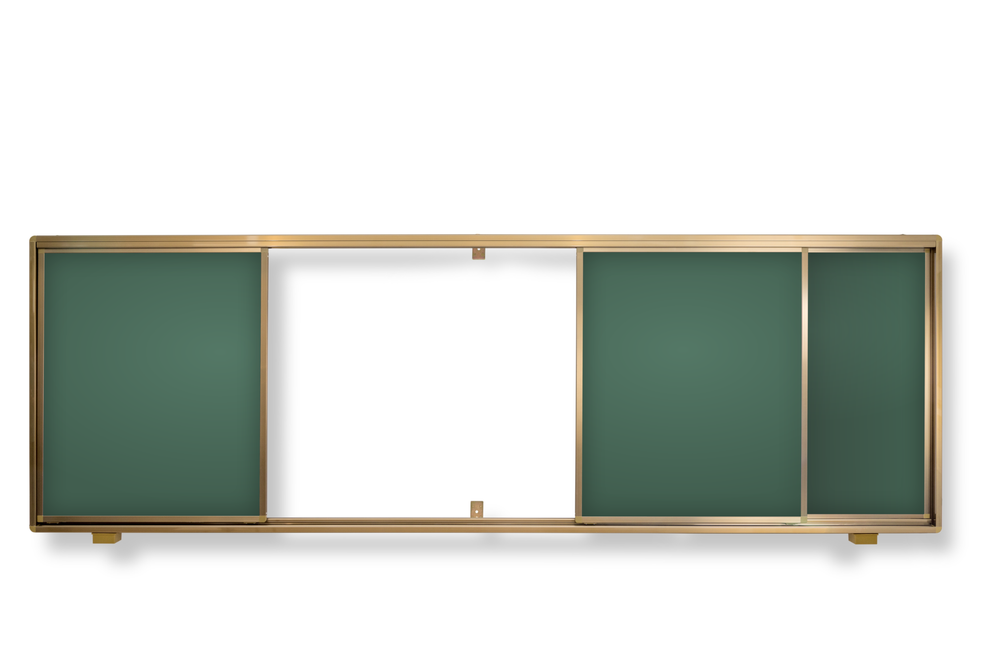 Раздвижная рельсовая система BS состоит из 4-х поверхностей, две фиксируются к стене и две свободно перемещаются по рельсовой системе перекрывая установленную в центре интерактивную панель. Предназначена для установки в учебных заведениях всех типов: от дошкольного образования до высших учебных заведений.