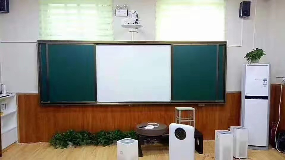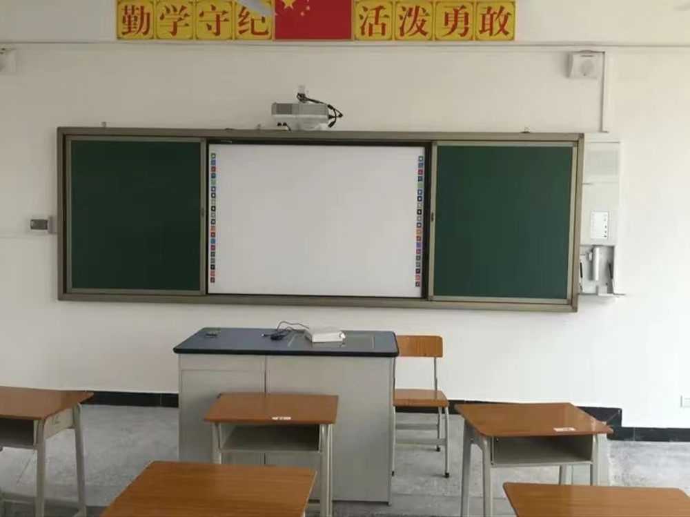 Раздвижная рельсовая система Interwrite + интерактивная доска Interwrite XGA-1 + короткофокусный проектор + крепление + кабель, состоит из 4-х поверхностей, две фиксируются к стене и две свободно перемещаются по рельсовой системе перекрывая установленную в центре интерактивную доску. Предназначена для установки в учебных заведениях всех типов: от дошкольного образования до высших учебных заведений.