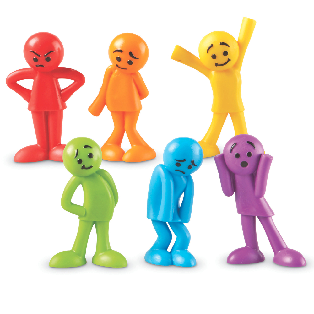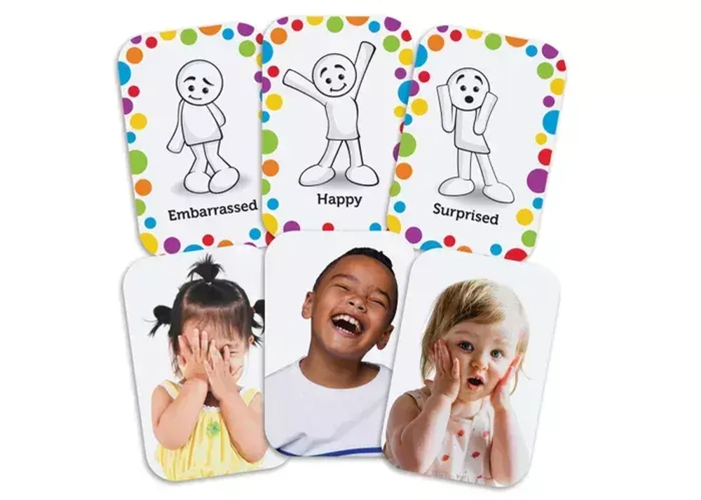 - Сначала отсортируйте человечков, в соответствии с их эмоциями. Для этого используйте специальные карточки с названиями чувств. Найдите фигурку с подходящим состоянием и создайте мини-группы.