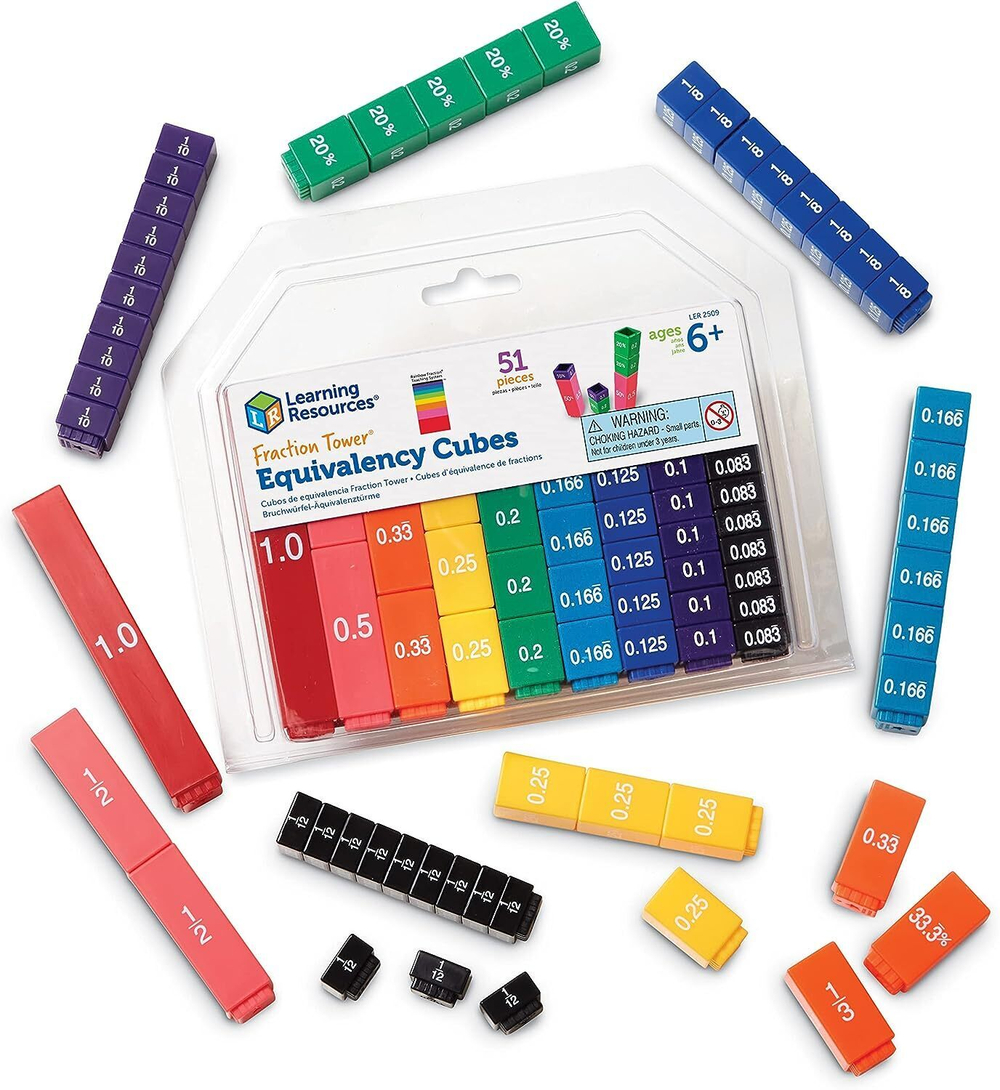 Набор из 51 цветного кубика наглядно и просто продемонстрирует зависимость между долями, дробями и процентами. Прочные, скрепляемые между собой кубики демонстрируют доли, дроби и проценты, которые четко обозначены на каждой стороне, что позволяет ученикам получить визуальное представление об эквивалентности.
