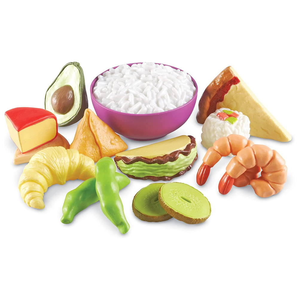 Попробуйте еду со всего мира! В этом аппетитном наборе представлены 15 популярных блюд из разных регионов с реалистичным дизайном, так как суши, самса, креветки, авокадо и многое другое! Детям обязательно понравятся такие узнаваемые фавориты, как пицца и круассан.