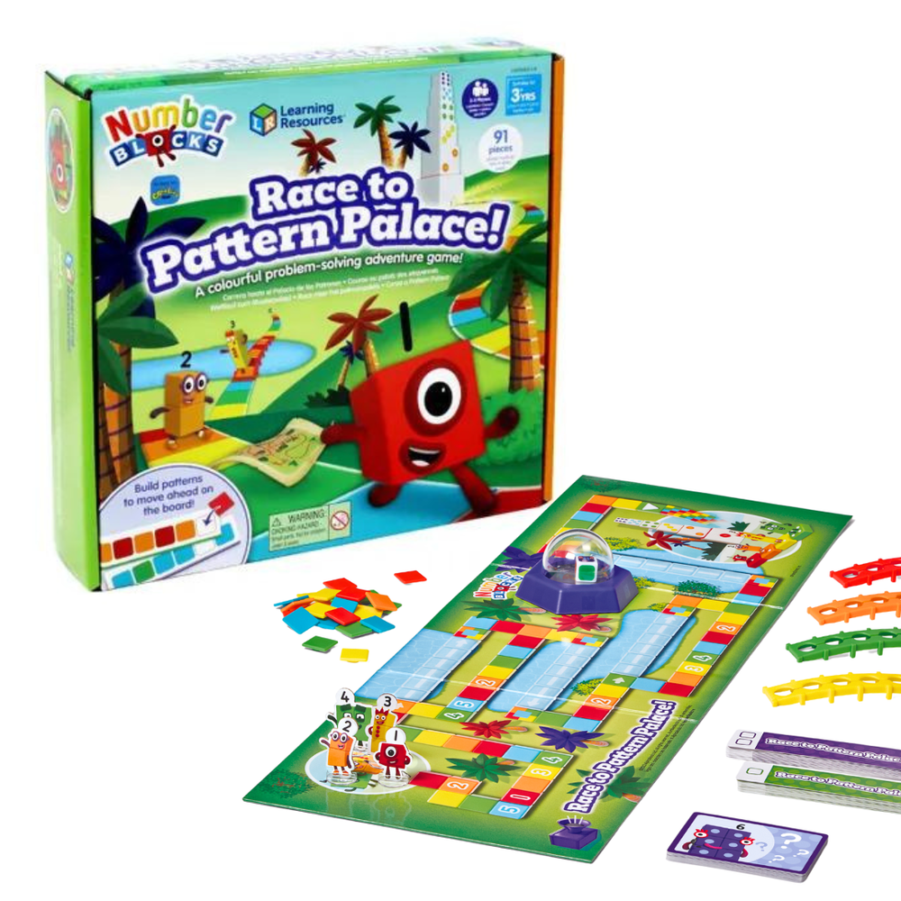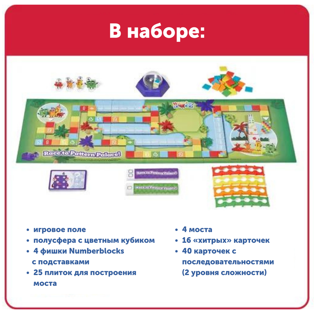 Кто первым доберётся до «Дворца Узоров»? Настольная игра по мотивам мультсериала Numberblocks (доступен на YouTube) помогает ребёнку тренировать счёт, достраивать логические последовательности и развивать творческое мышление.