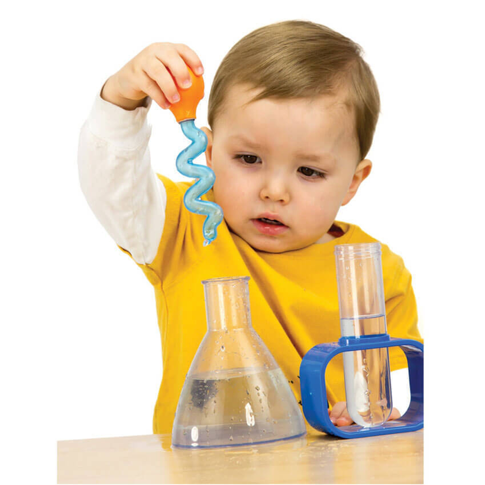 Пипетка "Ловкий головастик" идеальна для маленьких ручек. Удобно ложится в детскую ладошку, интуитивно понятна в использовании.С помощью пипетки можно переливать жидкости из сосуда в сосуд, смешивать и наблюдать за реакцией разных веществ.Жидкость идет по зигзагообразной трубочке пипетки достаточно медленно, что само по себе очень нравится малышам.