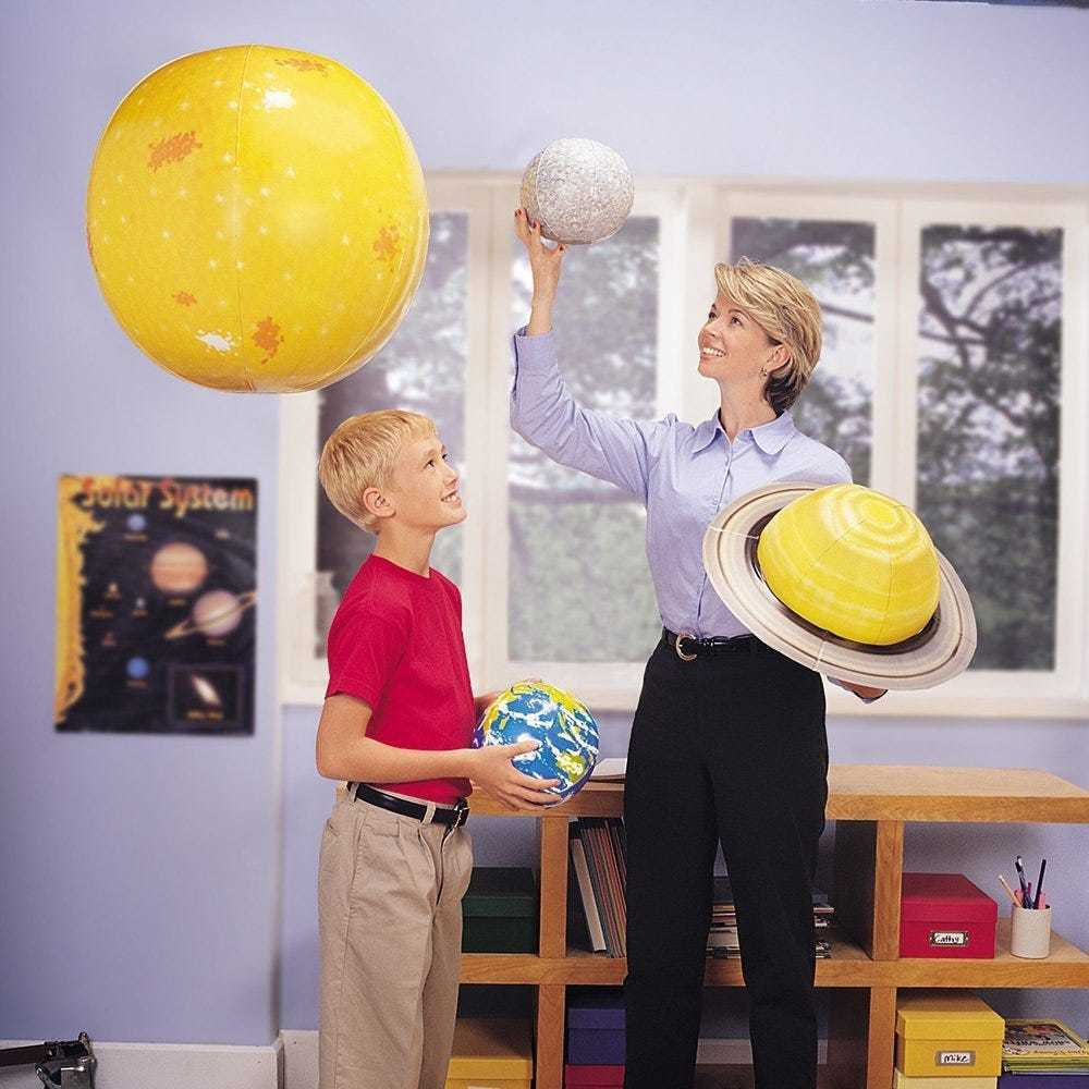 Девять разноцветных планет, Cолнце и Луна легко надуваются, превращая любую комнату в межгалактический мир.