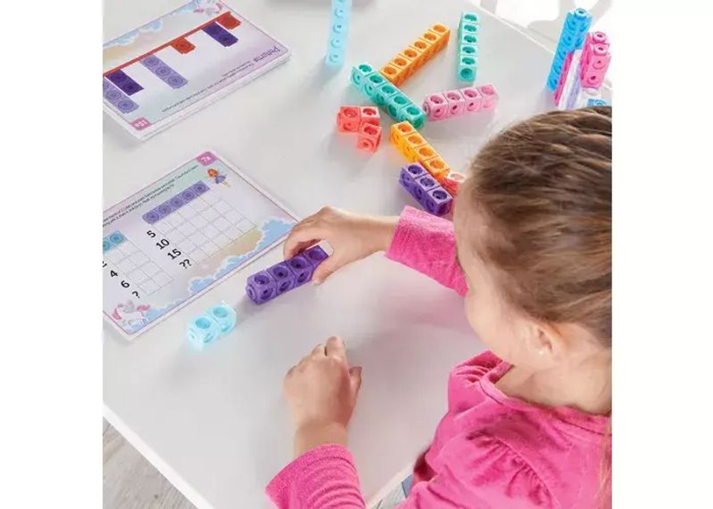 Работая с соединяющимися кубиками и карточками с заданиями, дети могут изучать и развивать ряд важных математических навыков, в том числе: счет, сортировку, состав числа 10, сложение и вычитание последовательности, работу по шаблону, а также развивать критическое мышление.