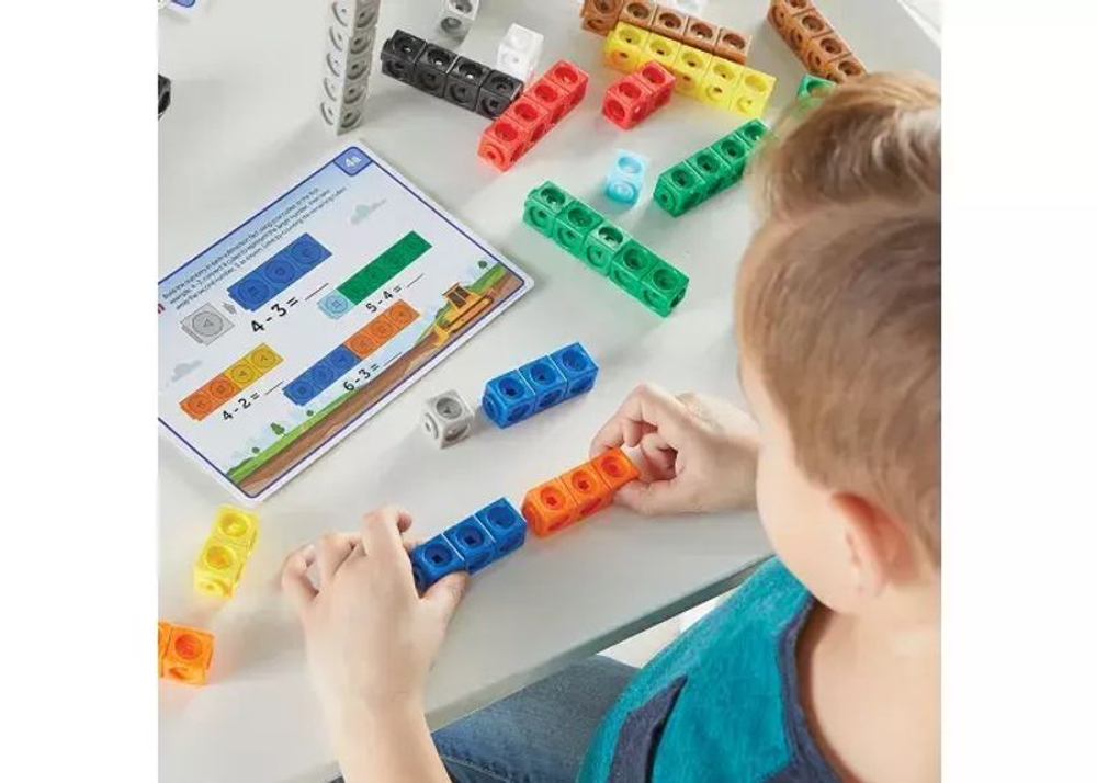 Работая с соединяющимися кубиками и карточками с заданиями, дети могут изучать и развивать ряд важных математических навыков, в том числе: счет, сортировку, состав числа 10, сложение и вычитание, последовательности, работу по шаблону, а также развивать критическое мышление.