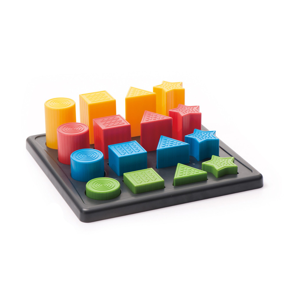 Набор состоит из блоков четырех цветов разной формы. Блоки обучают детей основным понятиям (таким как формы и трехмерные объекты), а также математическим идеям и теориям геометрии.