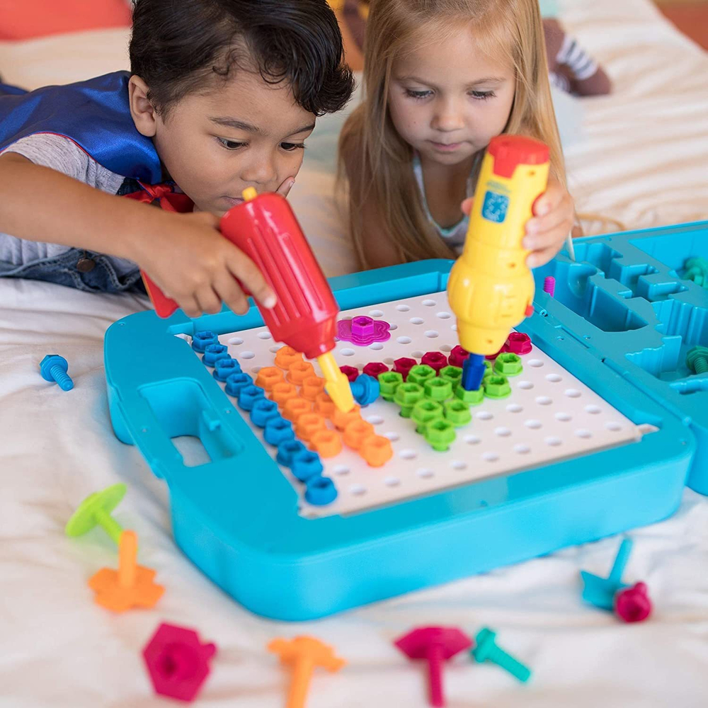 Насыщенные цвета болтиков прекрасно контрастируют с белым фоном рабочей панели, позволяя ребенку сосредоточиться на процессе создания осознанного узора.