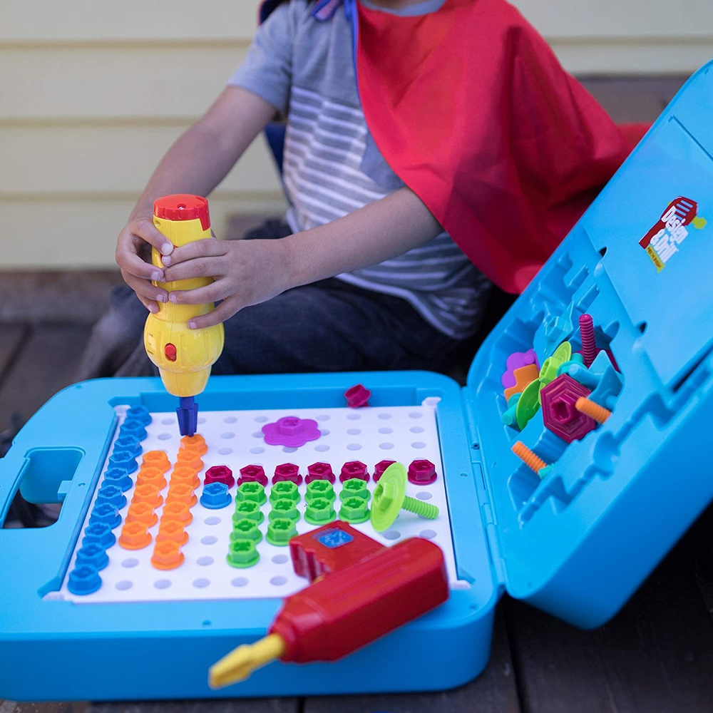Электрическая дрель, электрический шуруповерт, гаечный ключ и ручная отвёртка - пусть малыш сам решит, каким инструментом ему больше нравится играть именно сейчас!