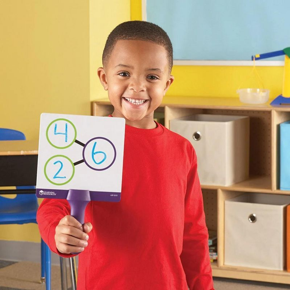 Планшет двусторонний – на одной стороне вы можете написать состав числа, а на другой – примеры с этими числами.
