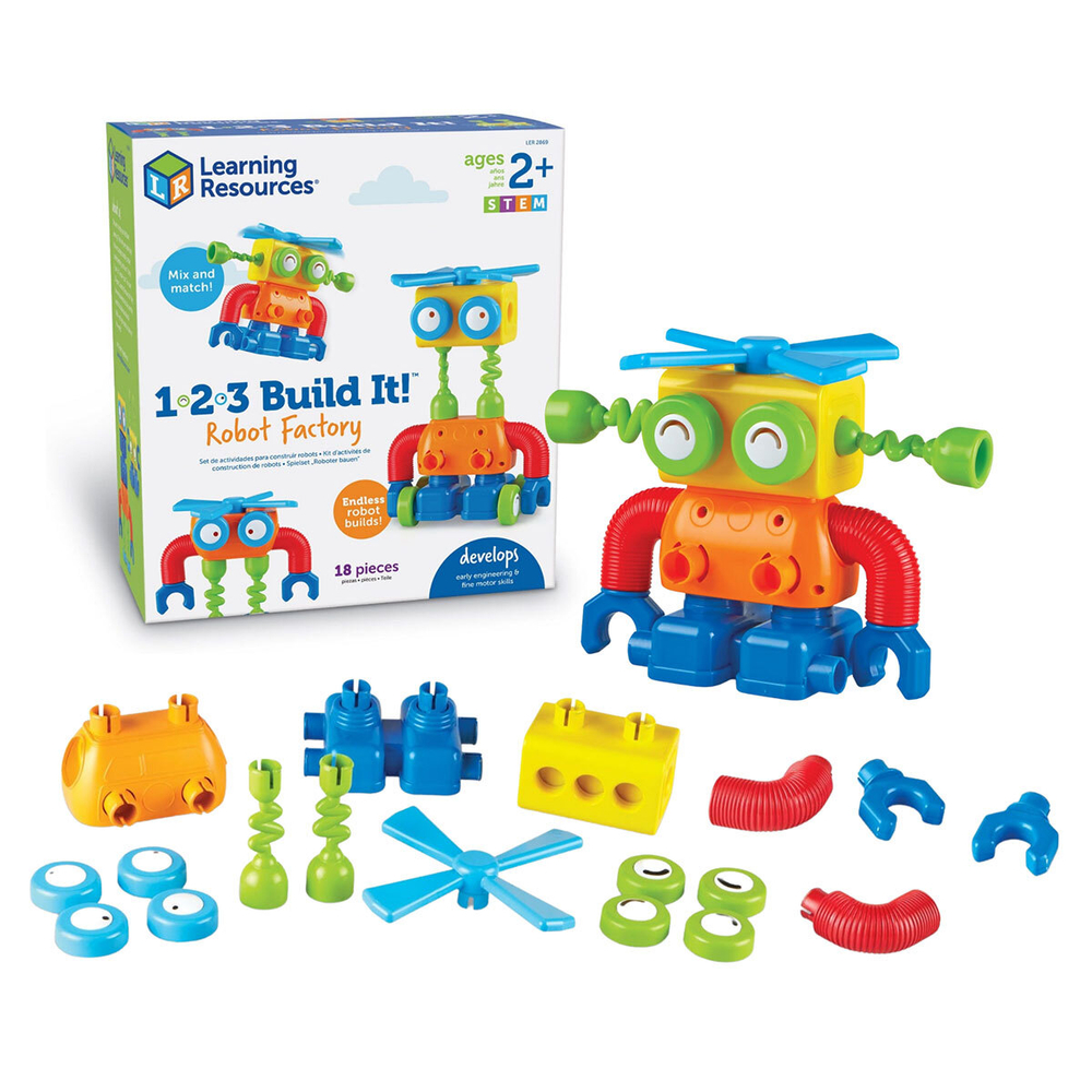 А о каком роботе мечтает ваш малыш? Дети создают своих собственных крутых роботов с врающимися элементами! Настоящая фабрика роботов у вас дома! Размер деталей идеально подходит для маленьких ручек.