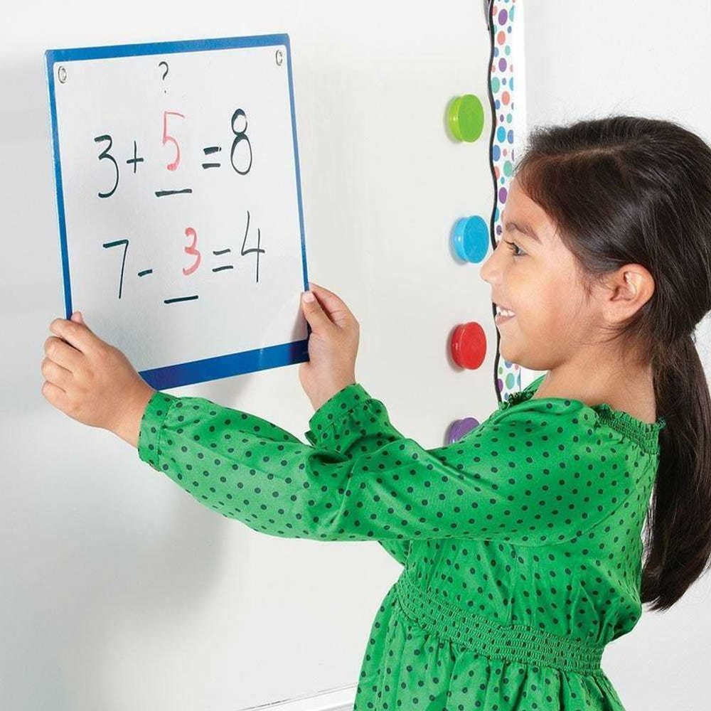 Достаточно большие, эти доски идеально подходят как для демонстрации классу, так и для индивидуальной работы учеников.Каждая доска имеет разноцветную рамку. Доски оснащены магнитной подложкой и подвесными втулками для универсального использования.