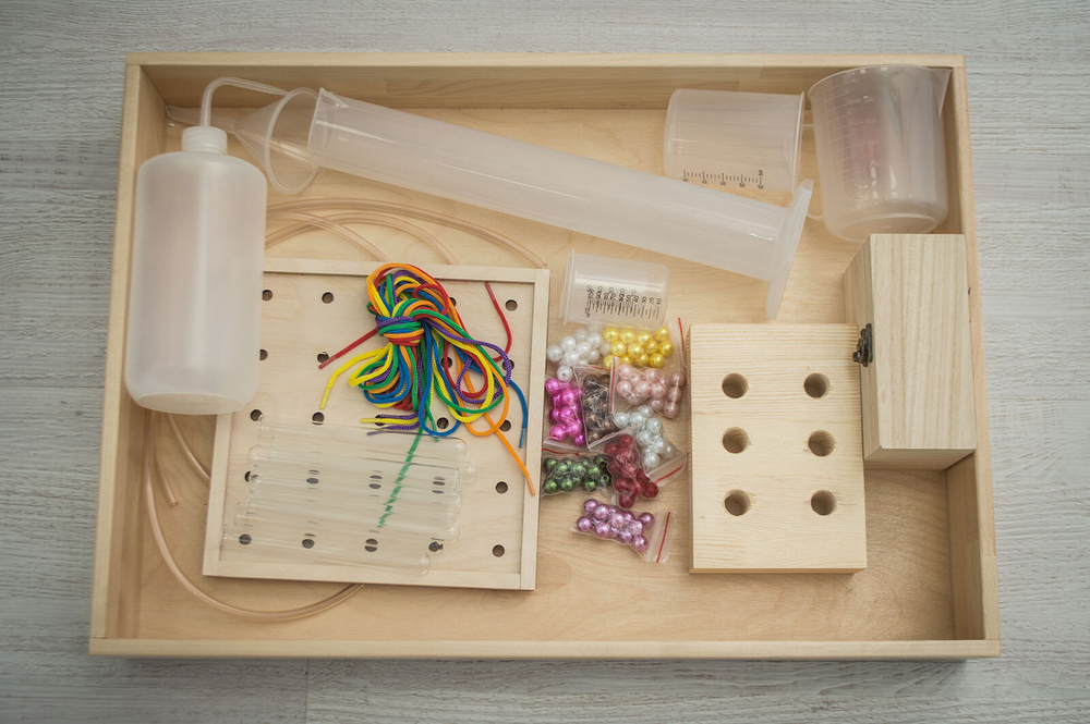 Комплект включает в себя все необходимое для проведения экспериментов. Это и материалы – веревочки, шарики, и различные сосуды для переливания. Практические опыты – это эффективный способ познания, который откладывается в памяти ребенка.