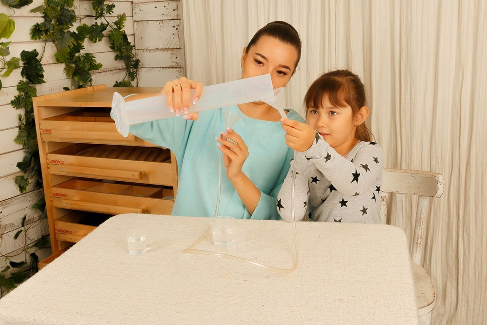 - Налить воду через шланг, наблюдая за тем, как вода бежит по нему. Можно подуть в шланг, наполненный водой.
