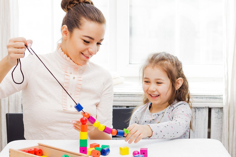 - Нанизывать бусины на шнурок в определенной последовательности.