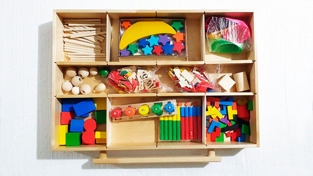 - Деревянные ящики, стеллаж и деревянные комплектующие тщательно шлифуются и обрабатываются во избежание получения детьми травм. Изделие полностью безопасно для малышей.