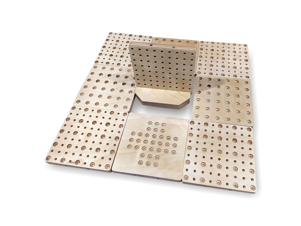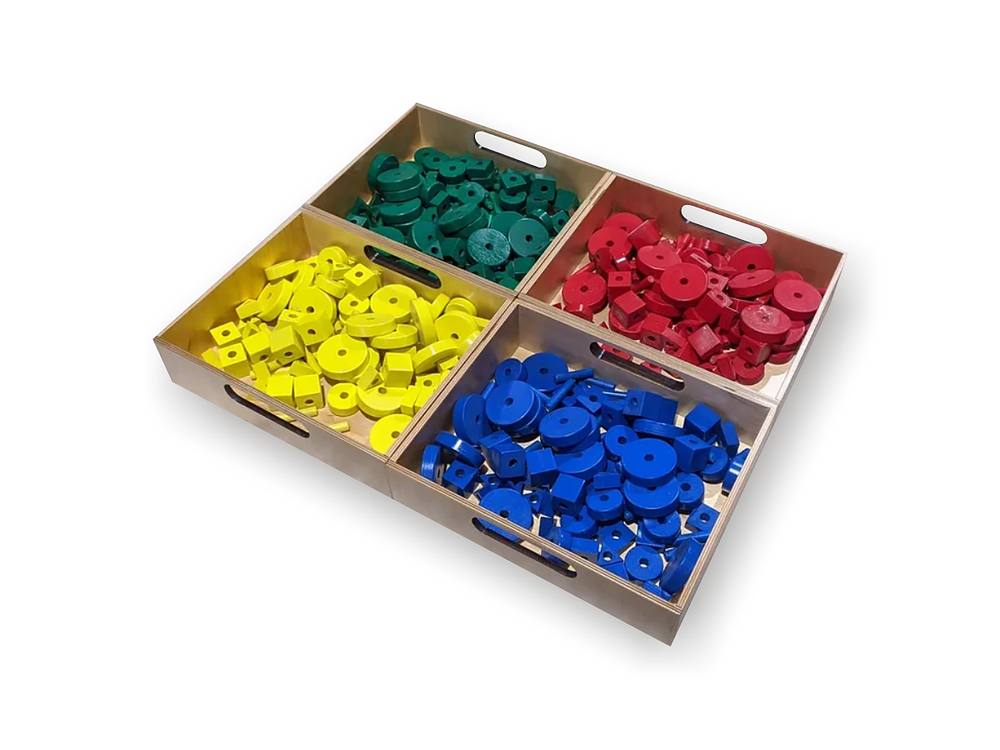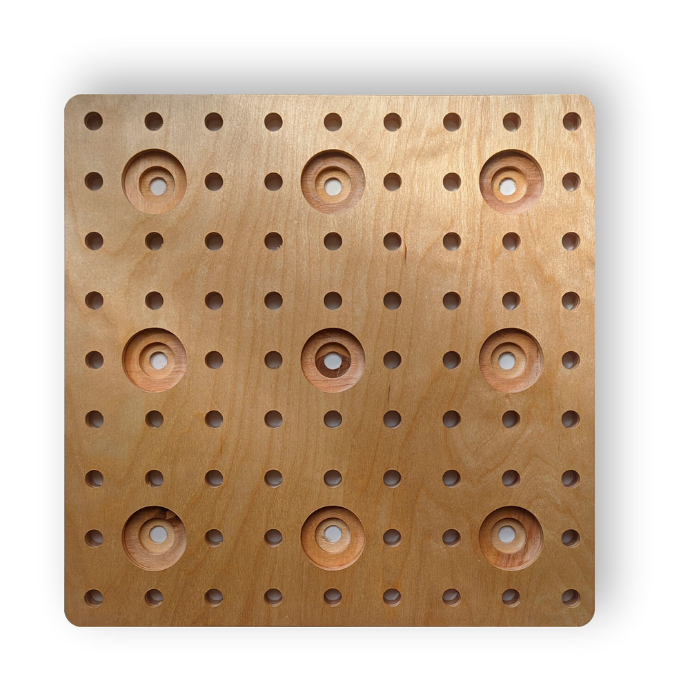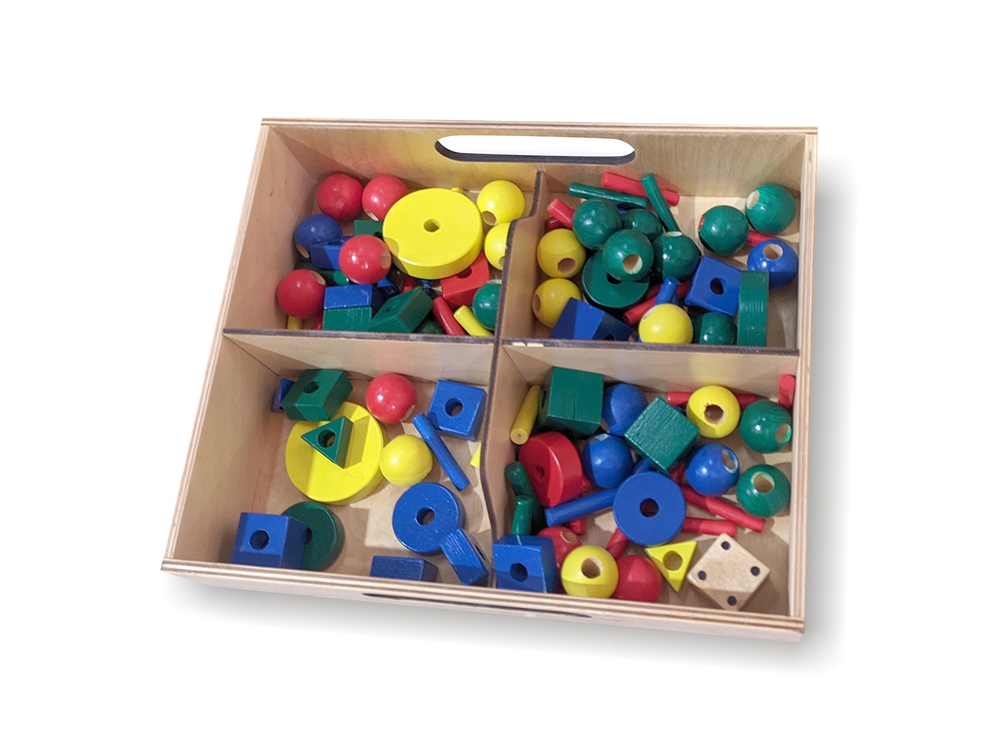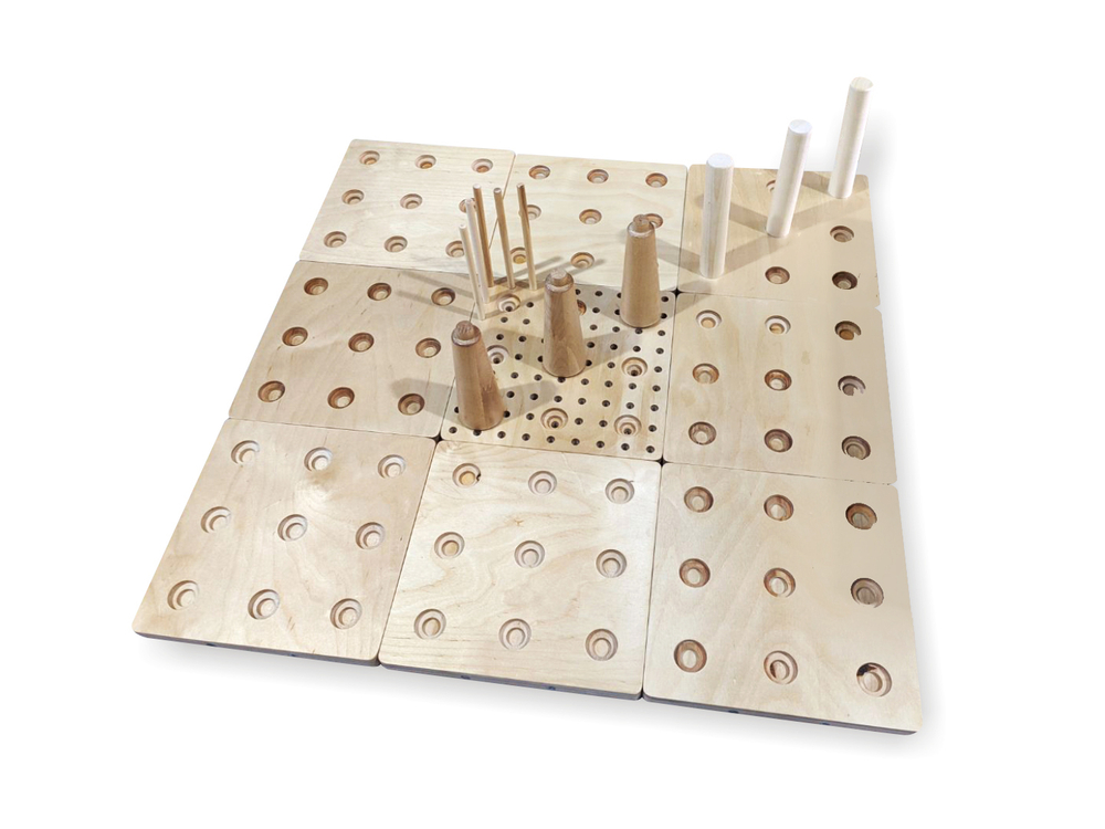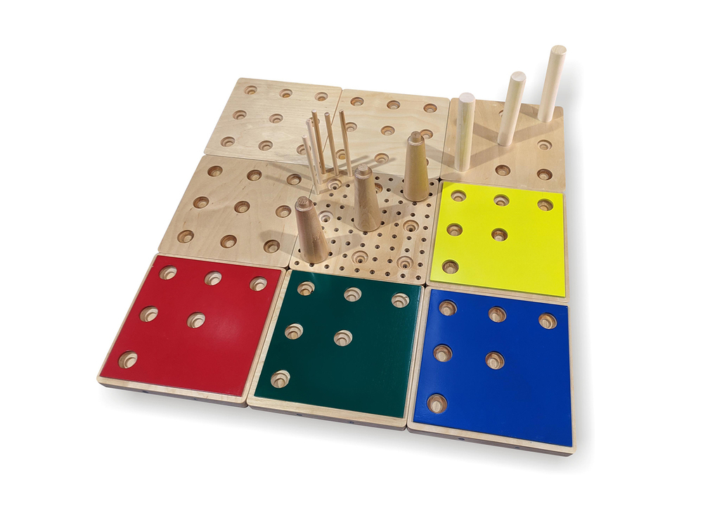 Доска-основа поможет ребятам изучить геометрические формы, размеры и цвета предметов. Дети могут расставить стержни на доску, а затем сверху нанизать бусины и фигурки разных форм. Во время игры они тренируют логику, память и внимательность, а также способность повторять действия за педагогом.