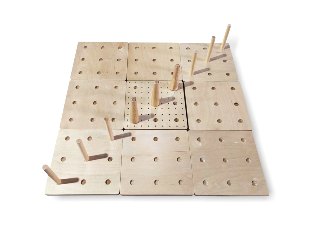 Доска-основа поможет детям выучить геометрические фигуры и проявить логику, составляя фигуры при помощи резинок и стержней. Так, дети могут расставить стержни на доске, а затем – надеть резинки таким образом, чтобы получить какую-то фигуру. Во время игры развивается логика, внимательность и сосредоточенность.