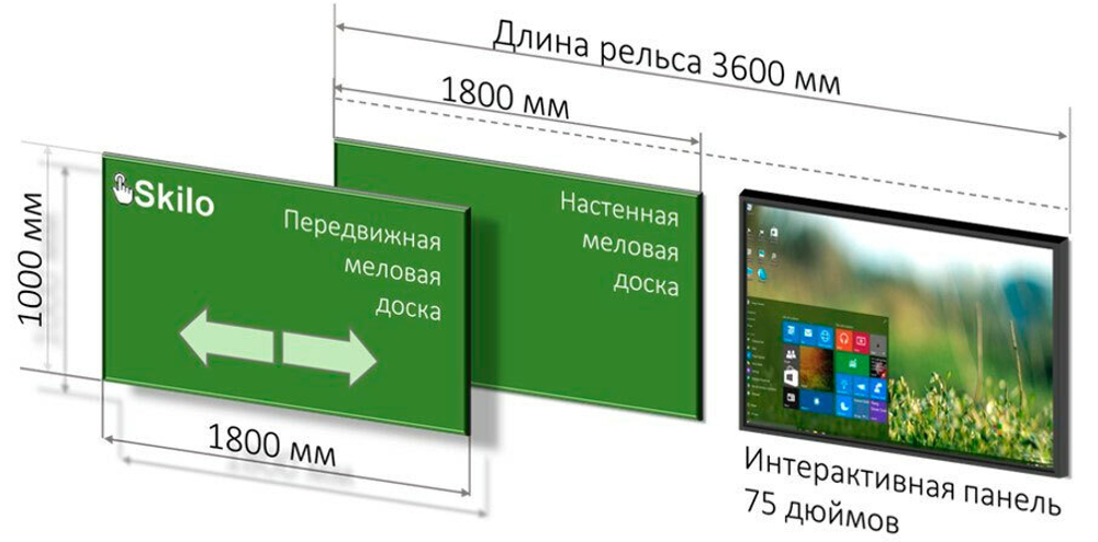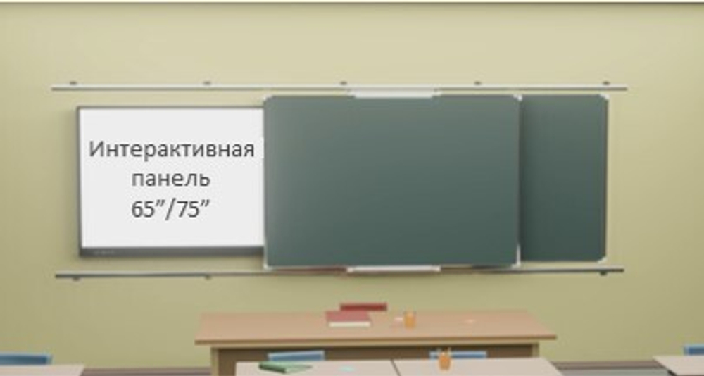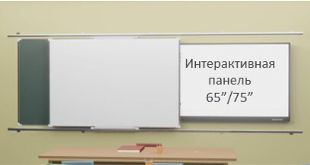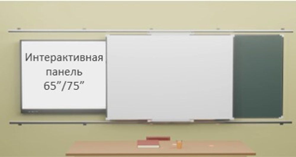 Рельсовая система представляет собой интегрированную систему, состоящую из интерактивного комплекса и двух магнитно-маркерных досок.