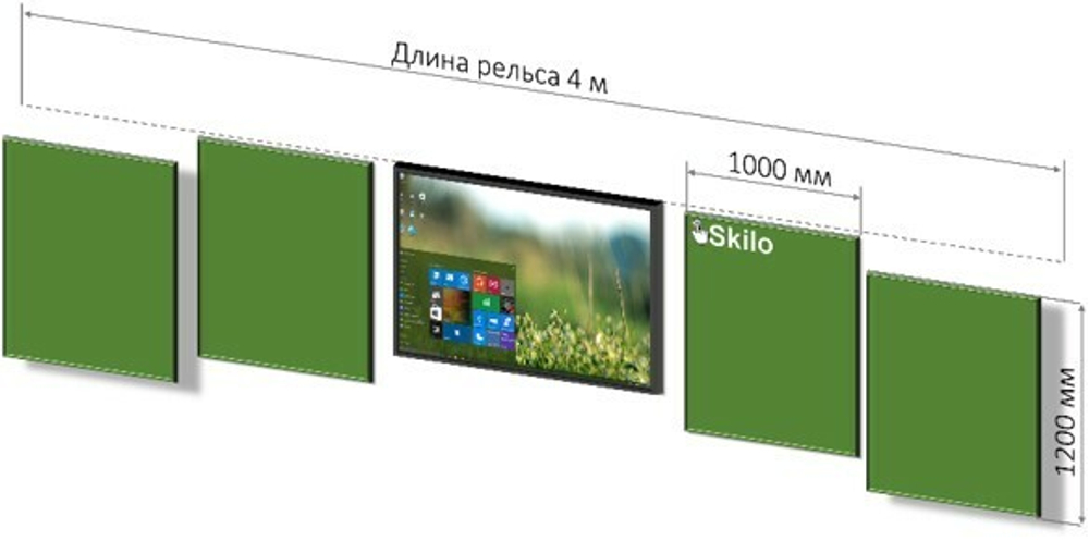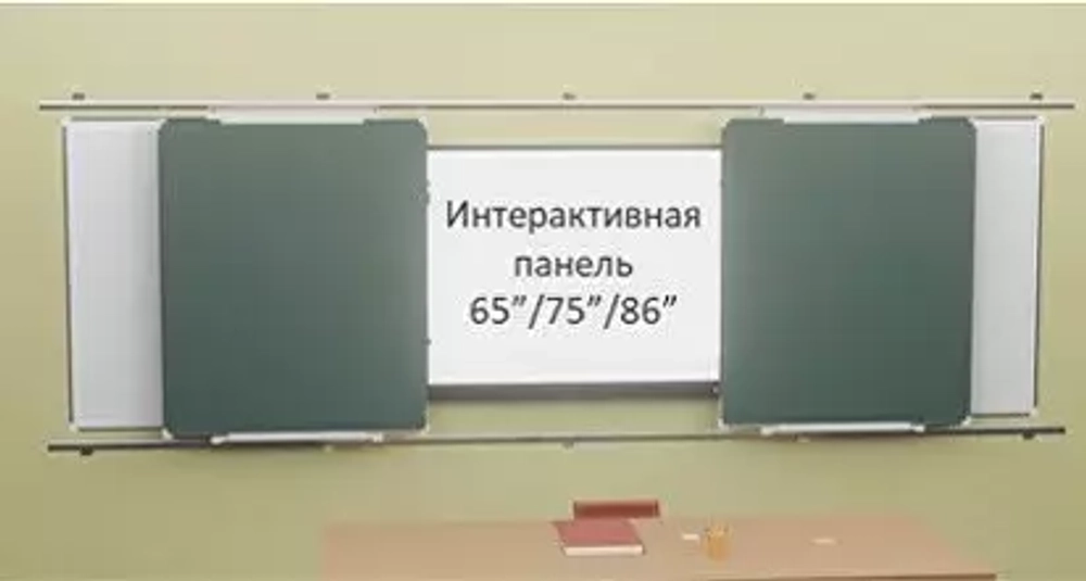 Рельсовая система представляет собой интегрированную систему, состоящую из интерактивного комплекса и четырёх магнитно-маркерных досок.