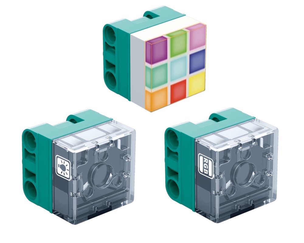 Программируемые компоненты: дополнительные большой мотор и датчик касания/давления, датчик освещенности, датчик цвета, 9-пиксельная RGB-матрица.