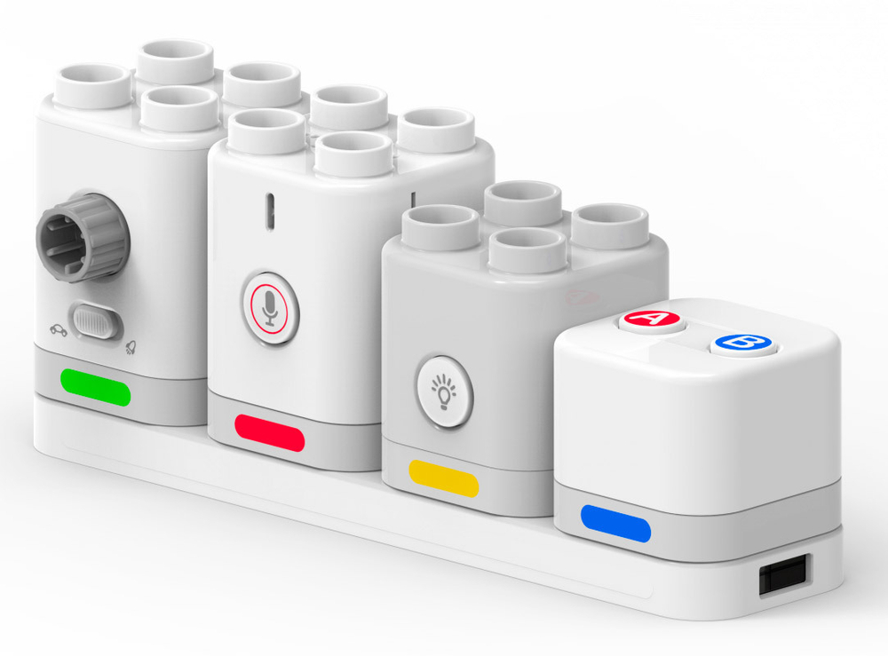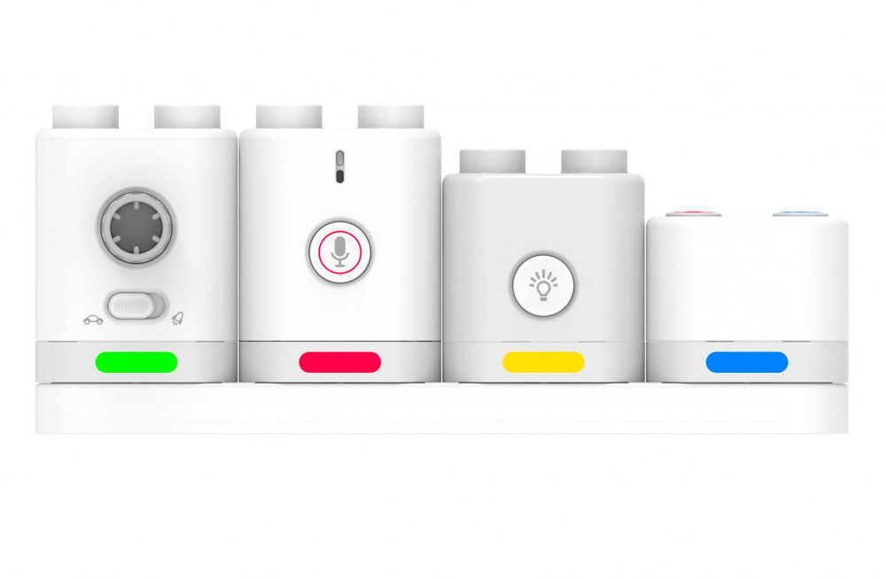 Дополнительный набор из четырех беспроводных элементов: двигатель, RGB-светодиод, звуковой модуль и пульт управления.