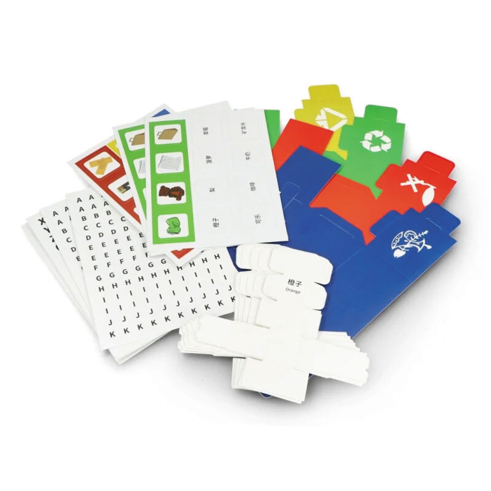 В состав набора входит игровое поле, карточки с буквами, картинками и словами, а также миниатюрные фигурки фруктов, овощей и напитков. С помощью набора дети узнают, как работает искусственный интеллект, основанный на распознавании букв, фигур и речи.