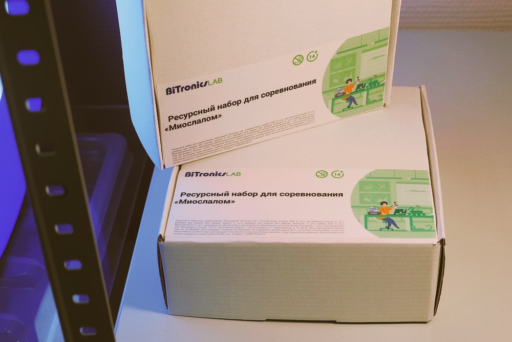 В соревновании «Миослалом» участникам необходимо провести автоплатформу за наименьшее время, при этом сбив как можно меньше препятствий. Автоплатформа управляется с помощью двух датчиков электромиограммы из комплекта модулей BiTronics NeuroLab.