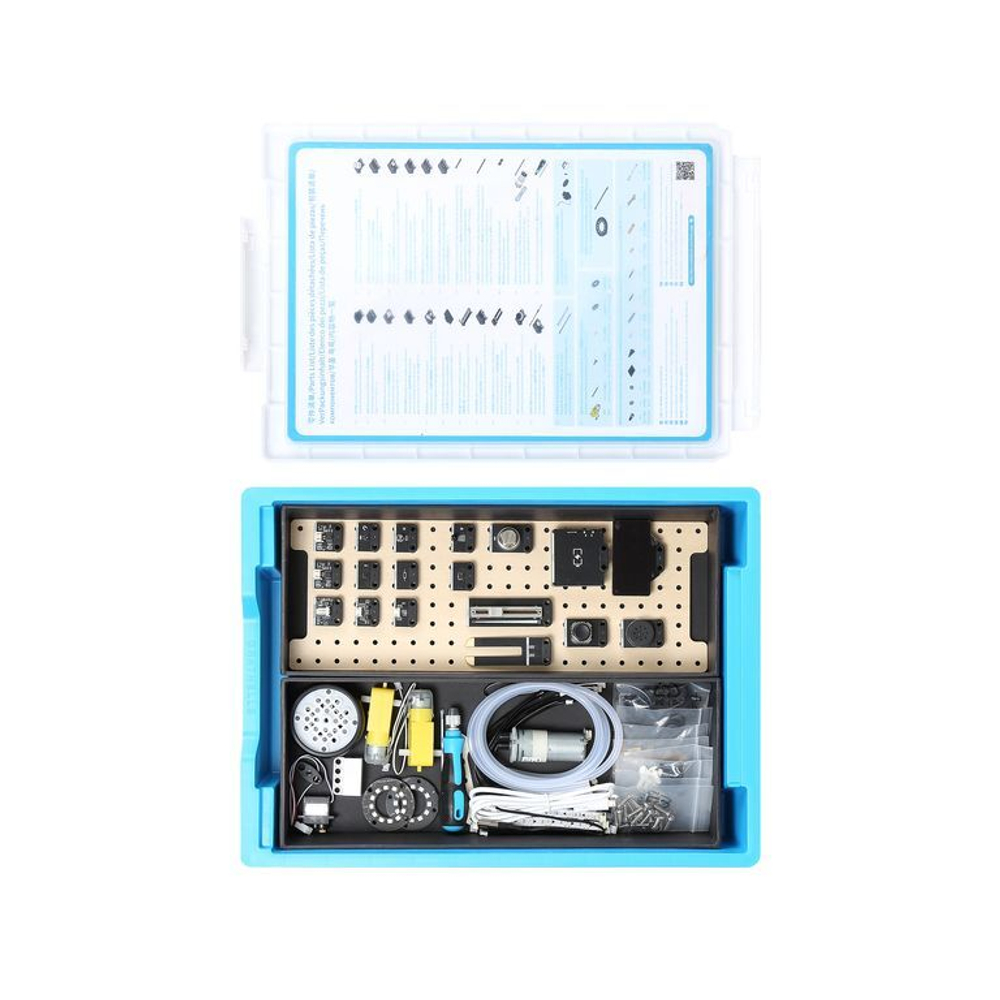 Ресурсный набор к программируемому в Arduino-подобной среде контроллеру HaloCode (не входит в комплект) для изучение основ искусственного интеллекта и интернета вещей, содержащий 18 электронных модулей mBuild и 7 типов аксессуаров к ним. С помощью набора обучающиеся могут изучать ИИ, интернет вещей, применять технологии в повседневной жизни и выполнять увлекательные проекты с помощью датчиков и визуального программирования. Модули программируются как на визуальном языке, так и на Python. Конструктивно модули совместимы с Makeblock и Lego.