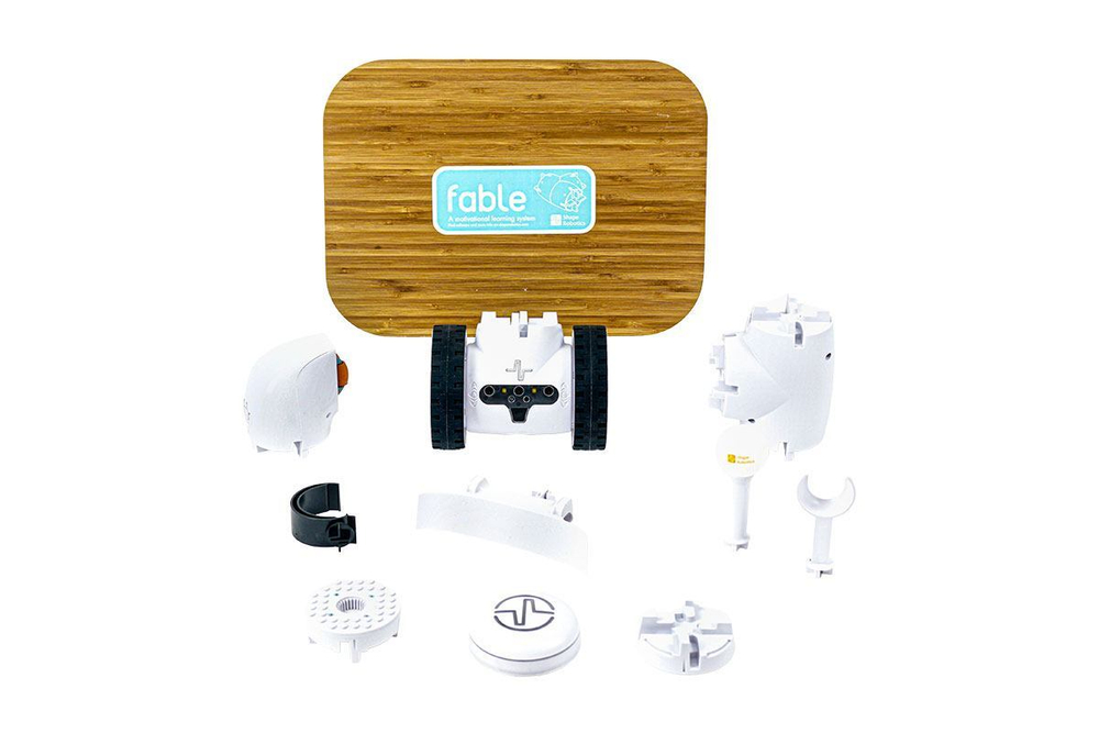 Насадки позволяют добавлять в дизайн материалы, напечатанные на 3D-принтере, а также кубики LEGO. Программное обеспечение с двумя экранами позволяет студентам блочно программировать в Fable, одновременно изучая Python. Когда они будут готовы, они могут переключиться на текстовый язык и создавать еще более масштабные решения.