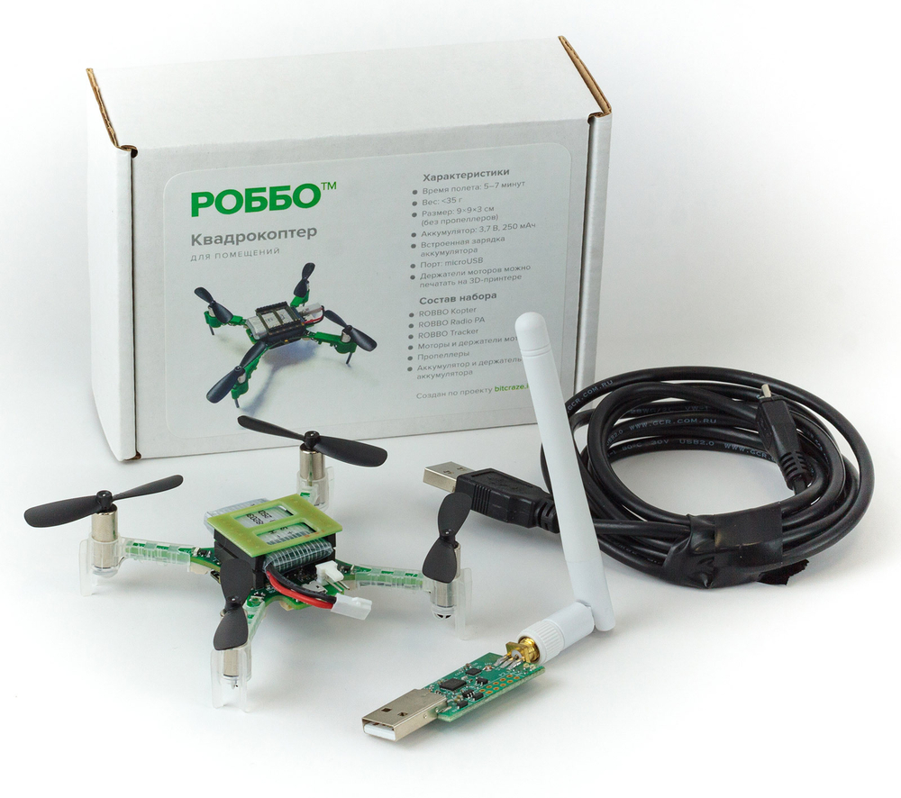 РОББО Программируемый квадрокоптер – это универсальная платформадля разработки летательных аппаратов с открытым исходным кодом, котораявесит всего 27 г и может уместиться на ладони.