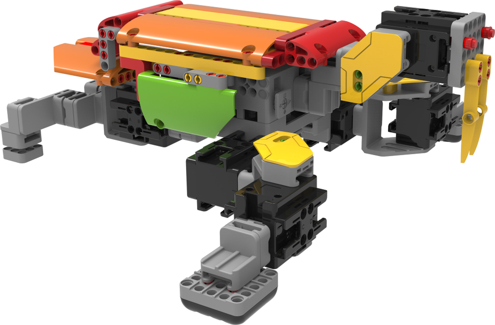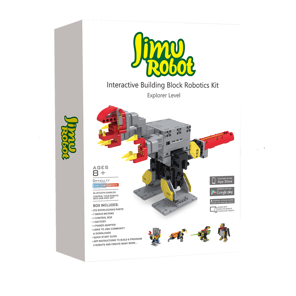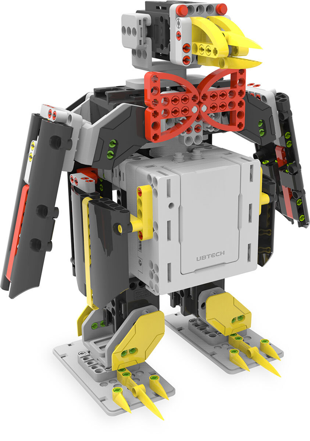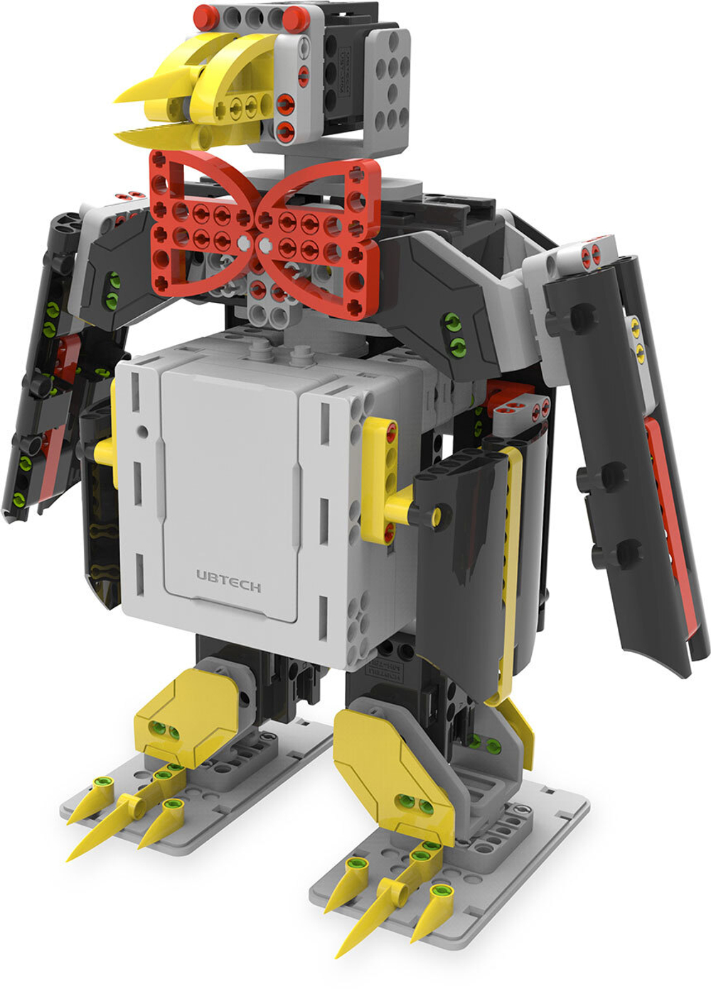Набор Ubtech Jimu Explorer состоит из основного управляющего устройства – «мозга» робота – различных соединительных элементов, а также сервоприводов, заставляющих двигаться ваше создание. Серводвигатели обеспечивают плавные, максимально приближенные к реальности движения конечностей робота. Они выполнены по типу суставов и позволяют сгибаться и разгибаться элементам конструкции. Составные детали набора соединяются без особых усилий и каких-либо специальных приспособлений. Потому конструирование робота Jimu доступно даже детям восьми лет. Все детали набора являются экологически безопасными.