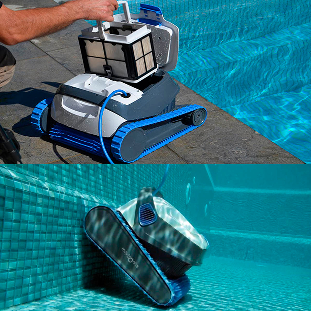 Под верхней крышкой корпуса располагается высоковместительный фильтр, который улавливает мельчайшие частицы загрязнений благодаря особой конструкции мембран. Робот оснащен интеллектуальными микросхемами, которые помогают пылесосу создать отцифрованную карту бассейна для дальнейшей оптимизации процесса уборки чаши.