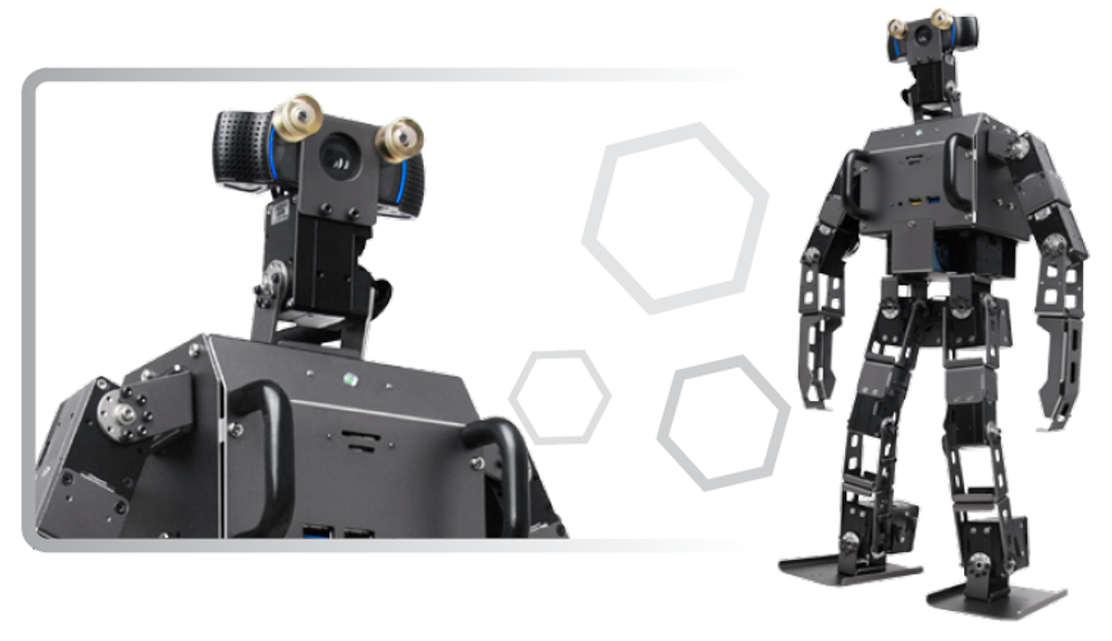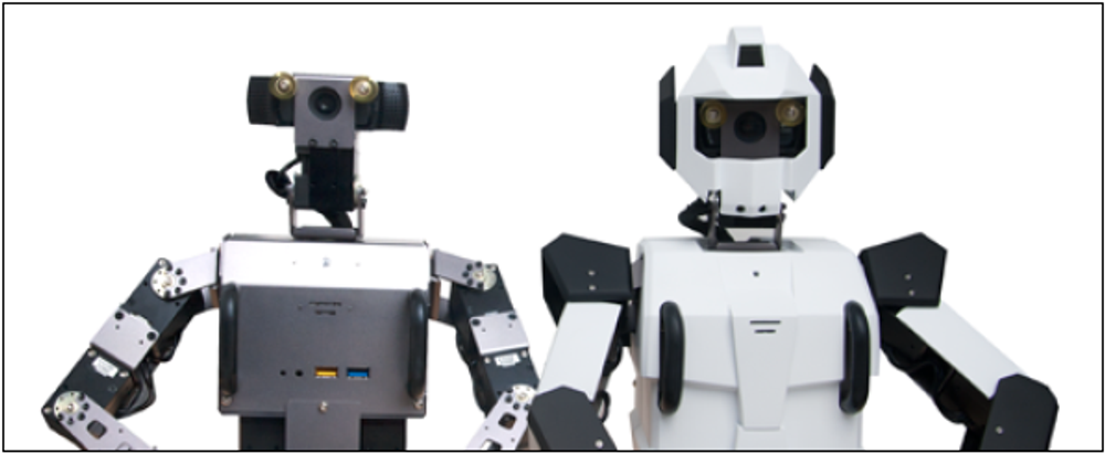 Человекоподобный робот на базе открытой платформы для научно-исследовательской деятельности. Робот обладает 20 сервоприводами Dynamixel, системой технического зрения и встроенным ПК на базе процессора Intel.