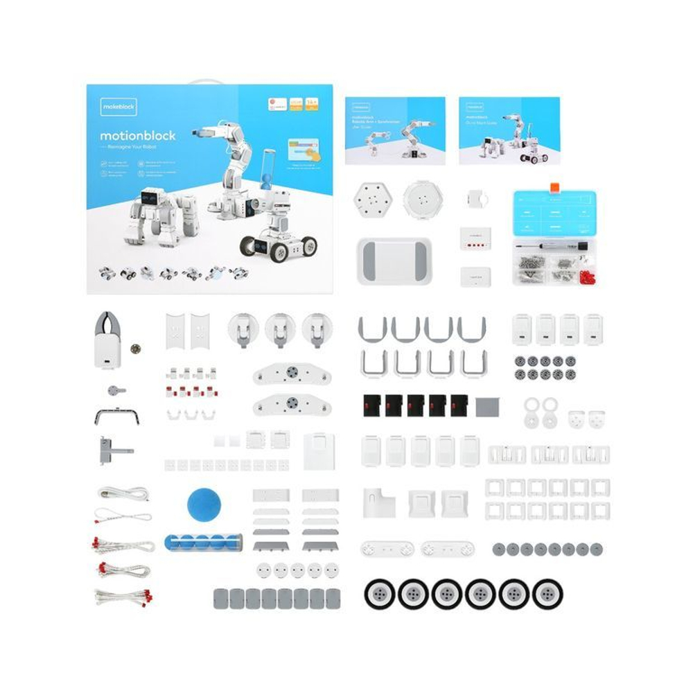 Набор позволяет собрать различные виды манипуляторов, имитации животных, машины и механизмы, позволяющие изучить разные принципы передвижения и автоматизации. Руководство пользователя содержит 10 вариантов роботов (электронные анимированные 3D-схемы в приложении Makeblock): горилла, собака, змея, боксёр, гусеница, манипулятор, катапульта, автомобиль, погрузчик, охранник.