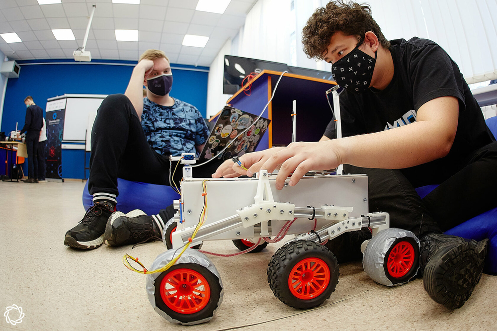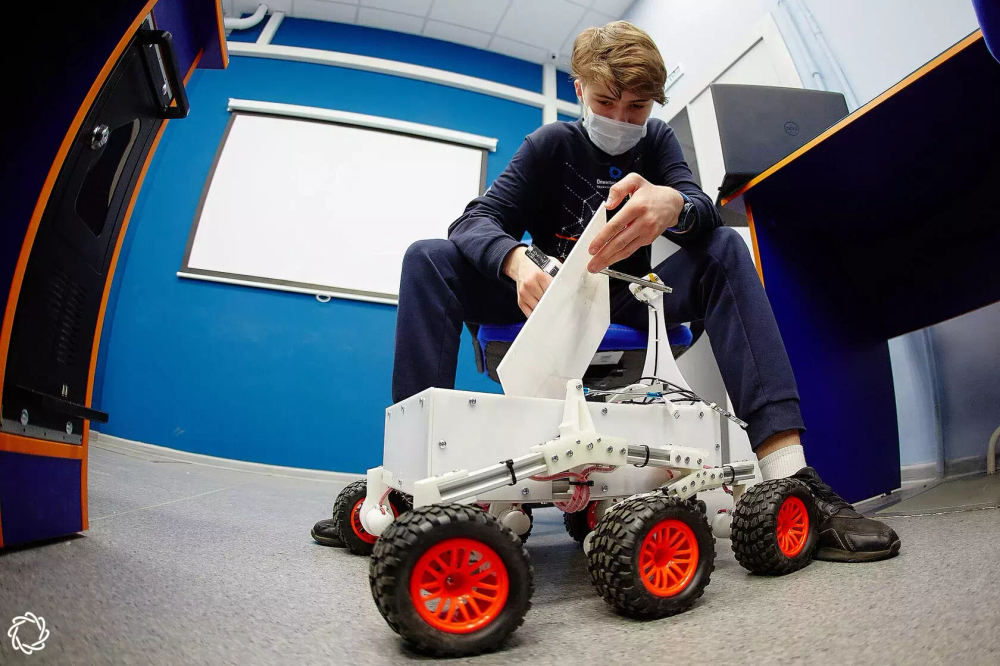 Колесный робот с подвеской "rocker bogie" в сборе под управлением ROS и набор оборудования для подготовки к профилю "Эксплуатация сервисных роботов" / Олимпиады НТИ и конкурсу "Космическая робототехника - Роверы" программы "Дежурный по планете".