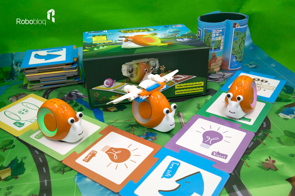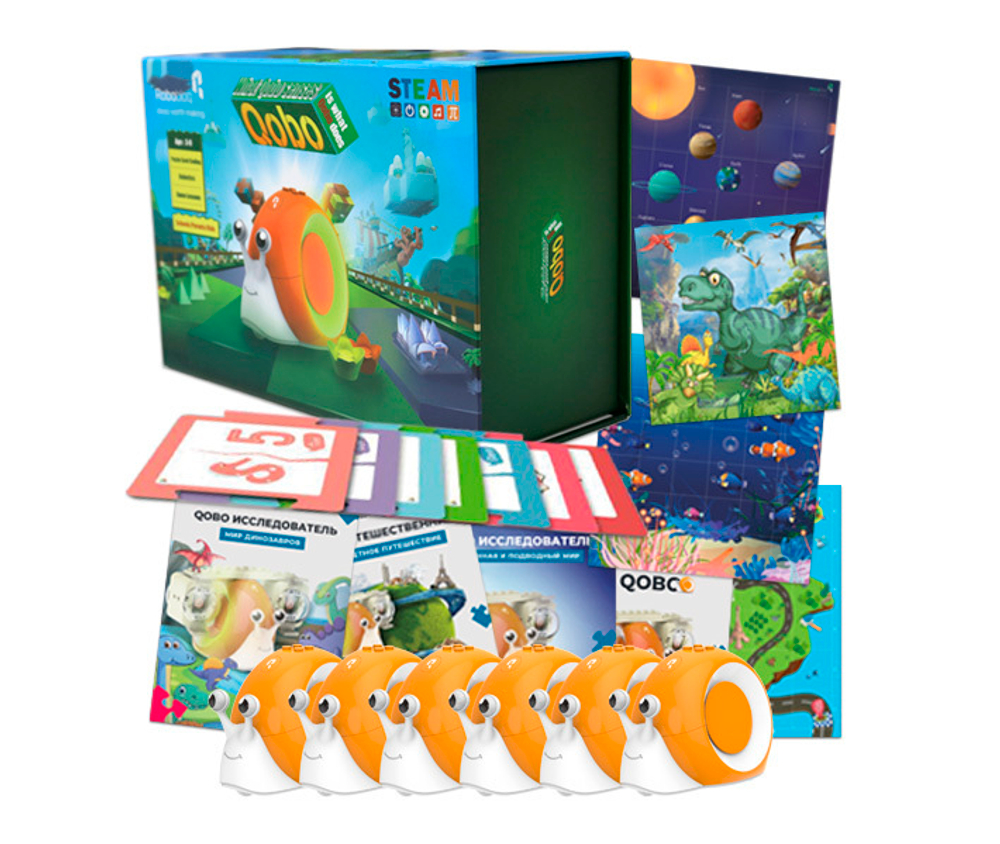 Набор Qobo – это не только интерактивный робот, созданный в виде улитки, но и комплект дидактического материала по основным темам естествознания, развития логики и программирования.