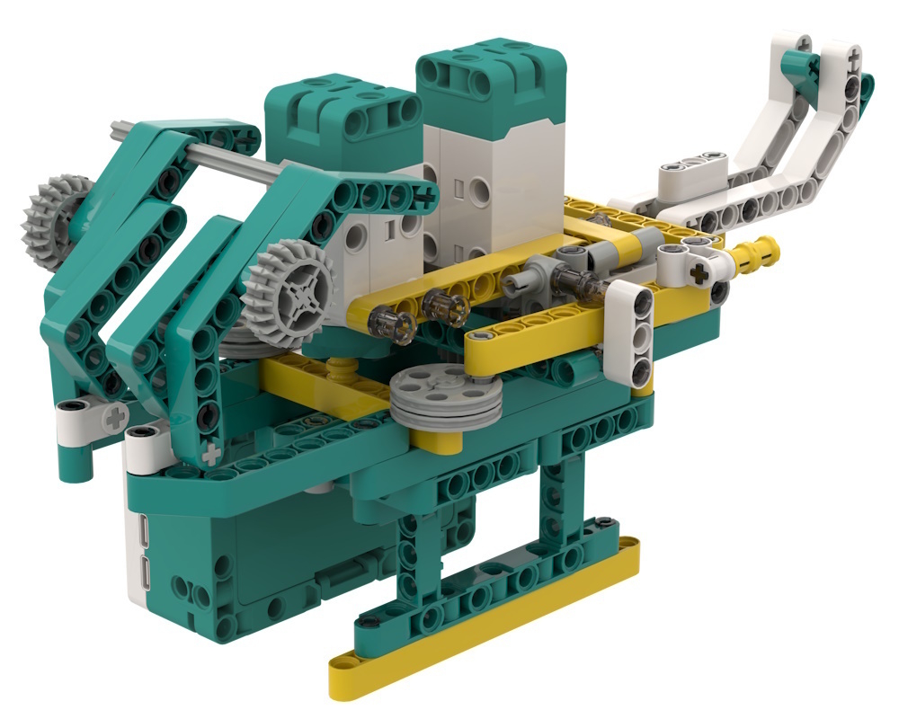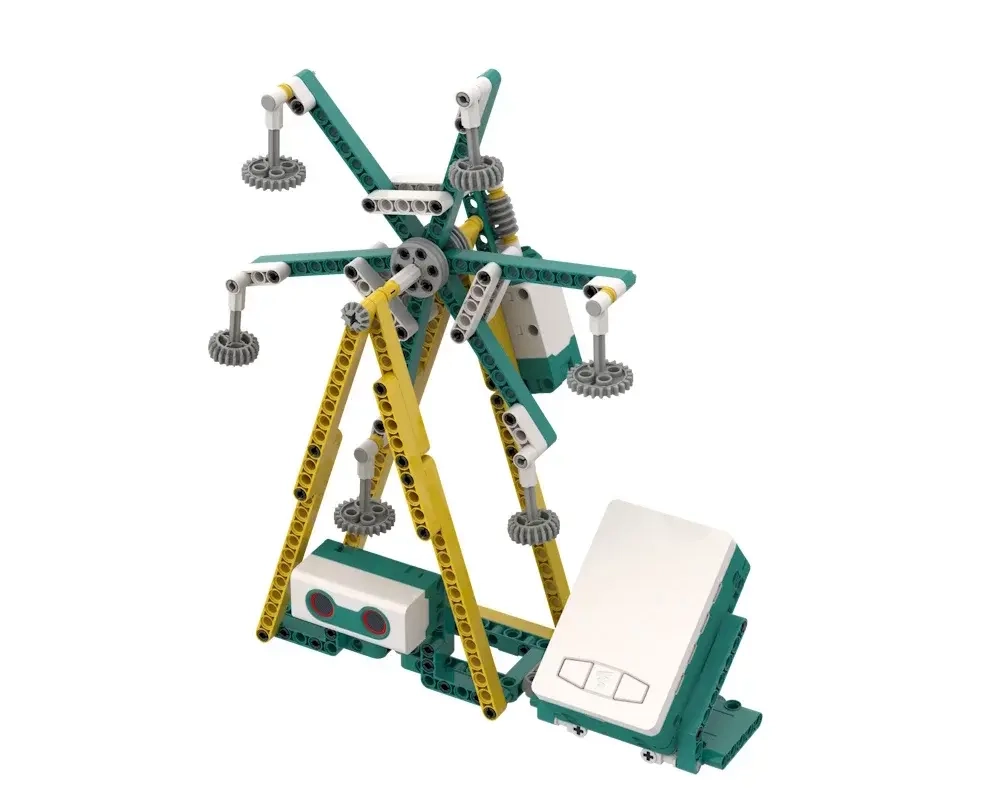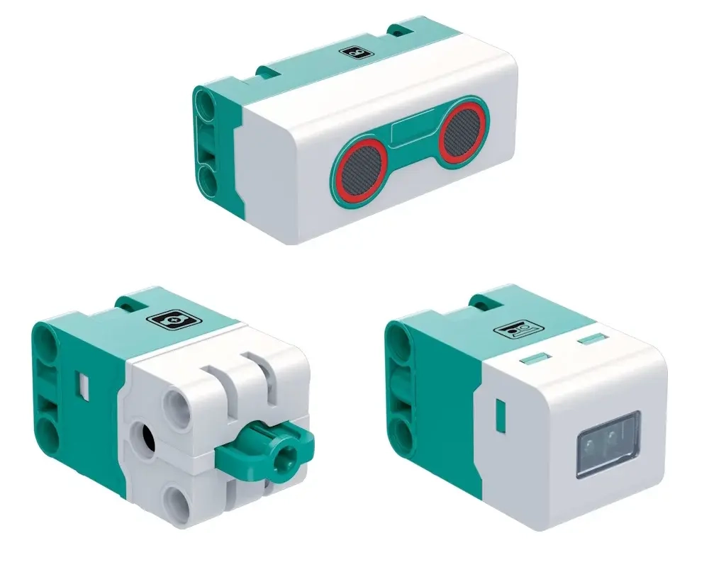 Программируемые компоненты: 2 малых и 1 большой моторы, ультразвуковой датчик расстояния, датчик касания/давления, 2 ИК-датчика освещенности.