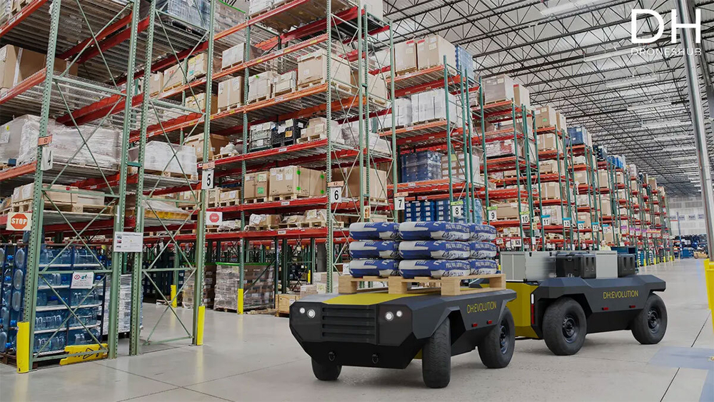 Модификация "Логистика" для автономного ровера dh:Evolution. Преназначена для работы на складских комплексах и транспортно-логистических терминалах для перевозки грузов на паллетах.