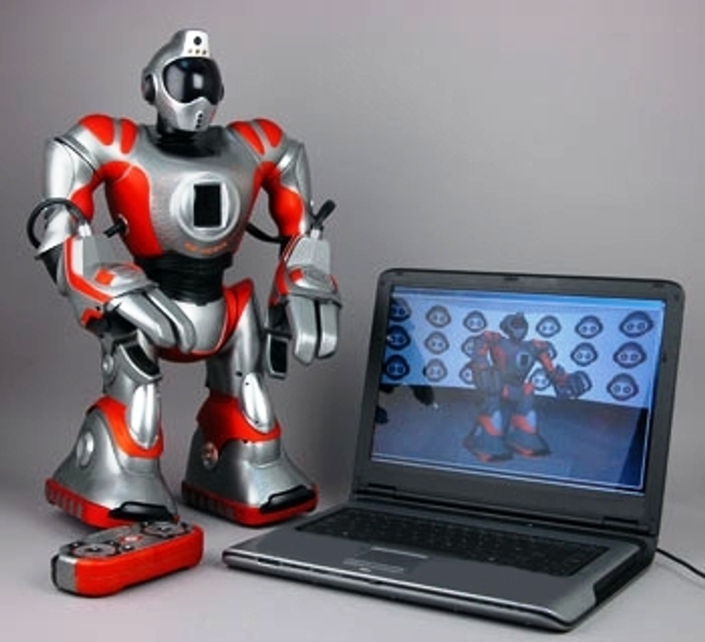 Просто переместите трехмерную модель Robosapien RS Media на Вашем персональном компьютере, (программное обеспечение прилагается), добавляя и синхронизируя файлы голоса с каждым движением; затем загрузите в память и наблюдайте, как он выполнит действия.