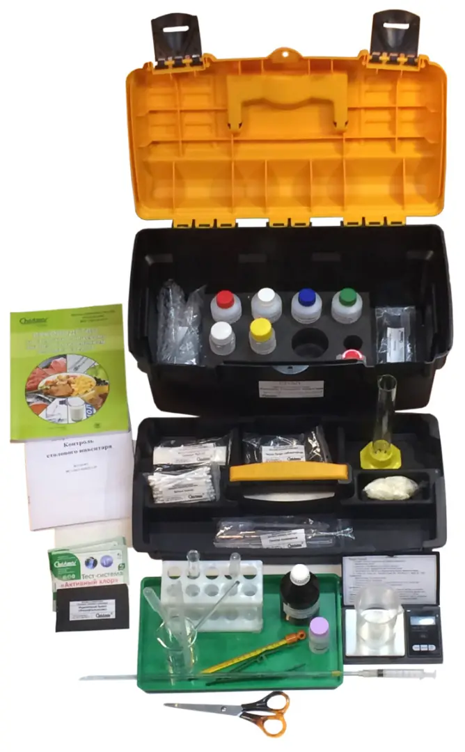 Работать с санитарно-пищевой экспресс-лабораторией «Контроль столового инвентаря»», кроме санитарных врачей, работников санитарно-гигиенических, ветеринарно-санитарных служб могут и менее квалифицированные специалисты, имеющие навыки выполнения основных химико-аналитических операций и освоившие приведенные в руководстве методики.