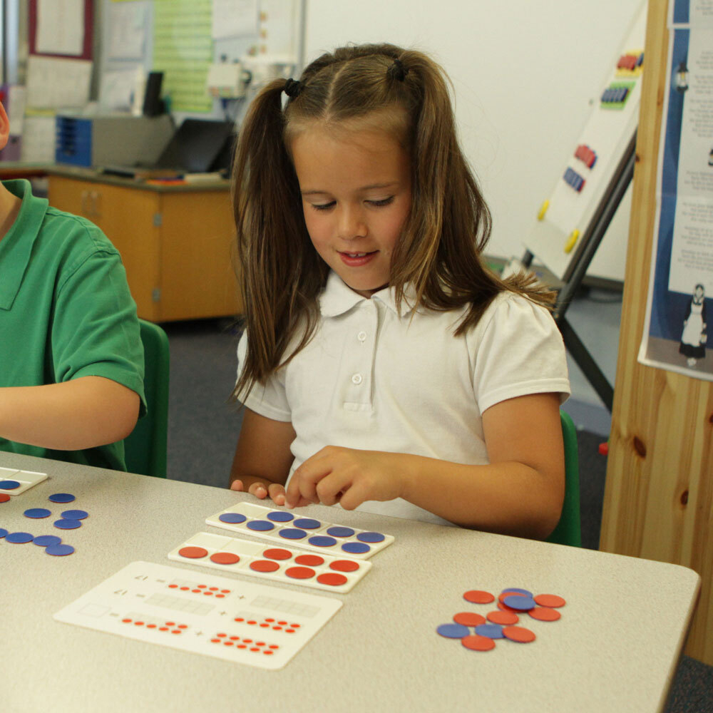 Состав: 8 рамок с 10 ячейками, 80 фишек двух цветов, 16 карточек с заданиями.