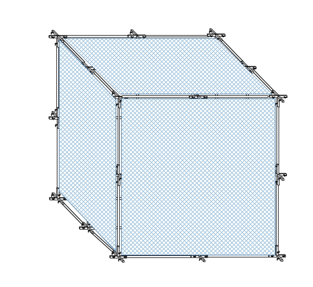 Сборная конструкция из нержавеющих труб, затянутая по периметру и в верхней части сеткой