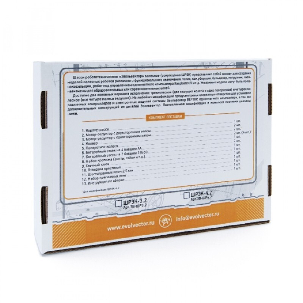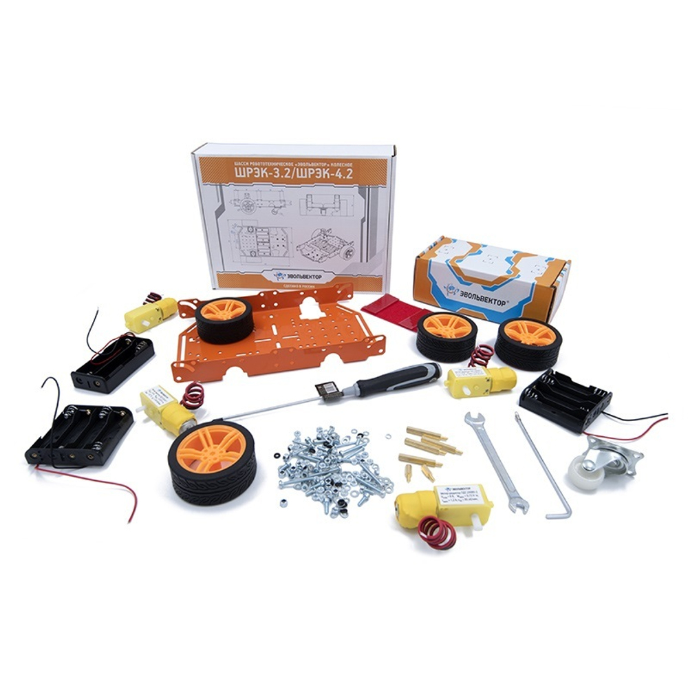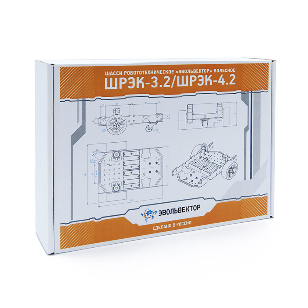 Шасси робототехническое «Эвольвектор» колесное (сокращенно ШРЭК) представляет собой основу для создания колесного робота. Предназначено для образовательных или соревновательных целей.