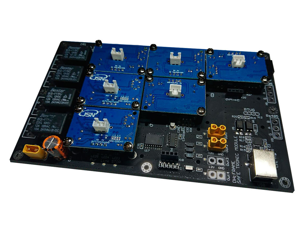 16 каналов оптических и ультразвуковых сенсоров, 8 гибко программируемых управляющих каналов. Независимый режим работы даже при потере команд от центрального бортового ПК.