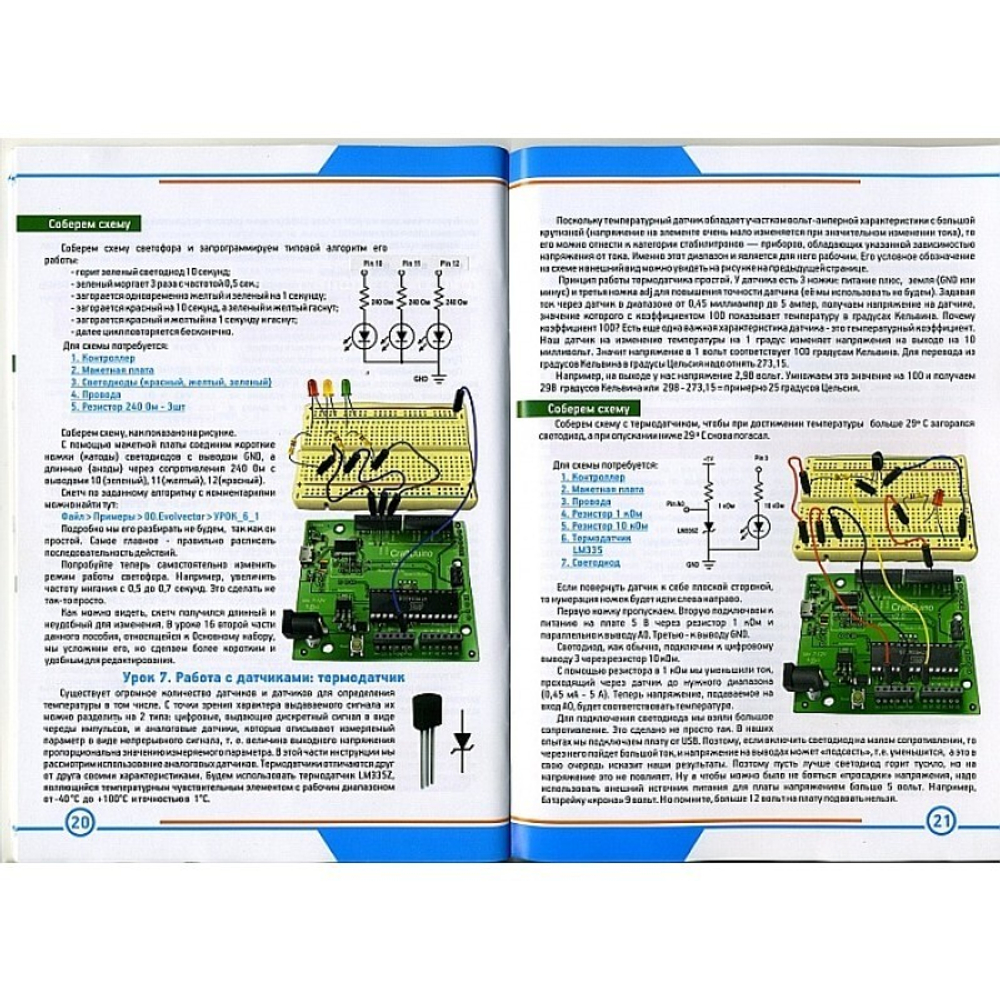 В процессе сборки описанных в книге схем вы познакомитесь с особенностями электронной платы контроллера, научитесь подключать ее к компьютеру и получите первые навыки создания программ.