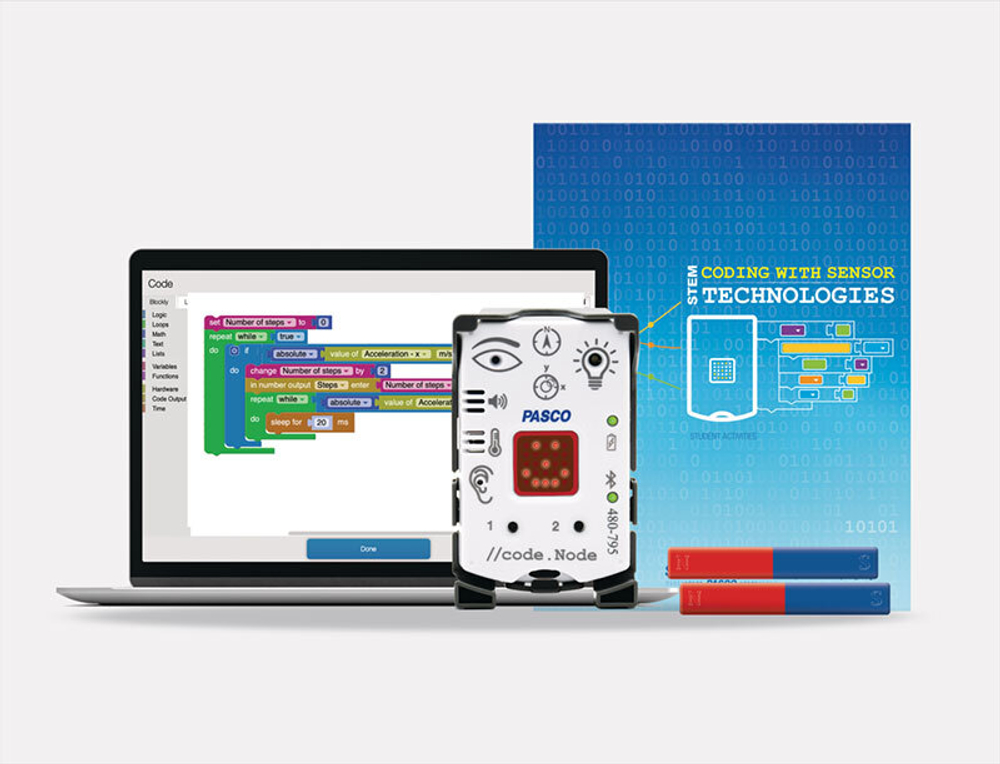 STEM-комплект PASCO «Умная среда обитания» разработан для обучения кодированию с использованием встроенных датчиков беспроводного модуля для программирования //code.Node.